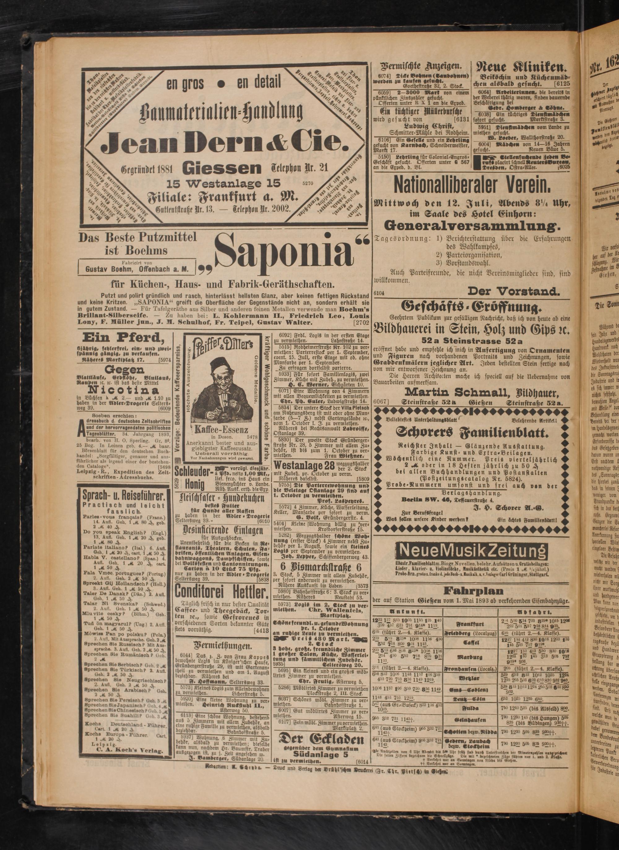 der auf Station Gieffen vom 1. Mai 1893 ab verkehrenden Eisenbahnzüge.