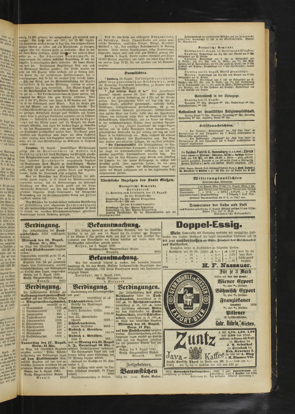 Gießen, den 9. August 1893. Großh. Bürgermeisterei Gießen.