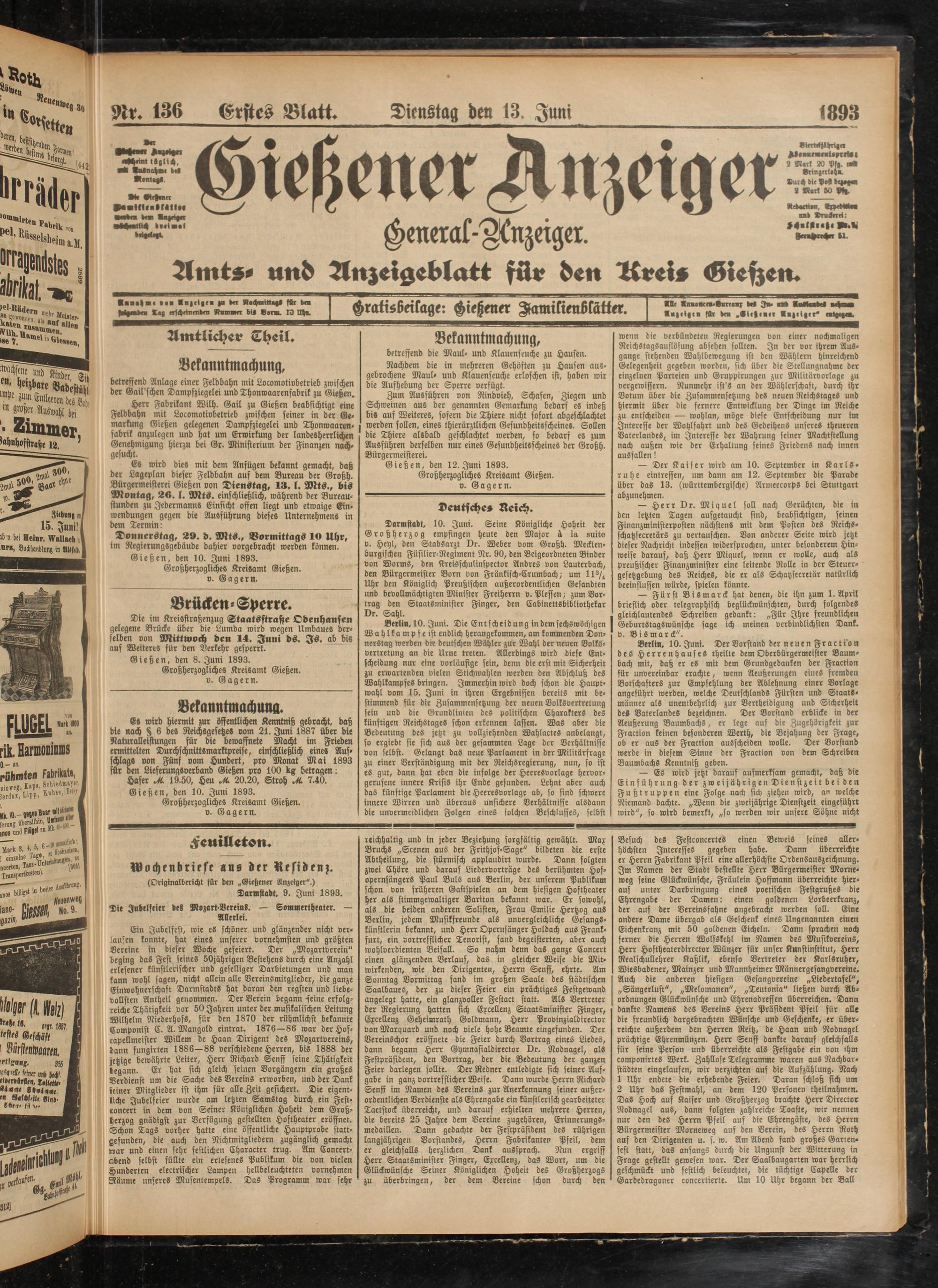 Gießen, den 12. Juni 1893.