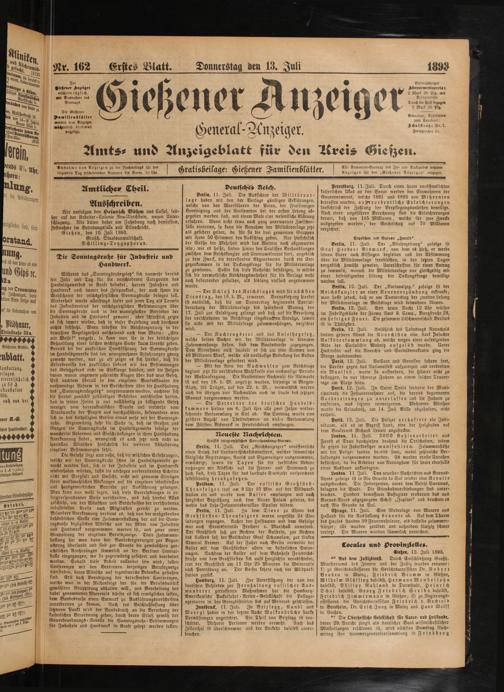 Zlints- und Anzeigeblutt füv den Ttveis Gieszen.