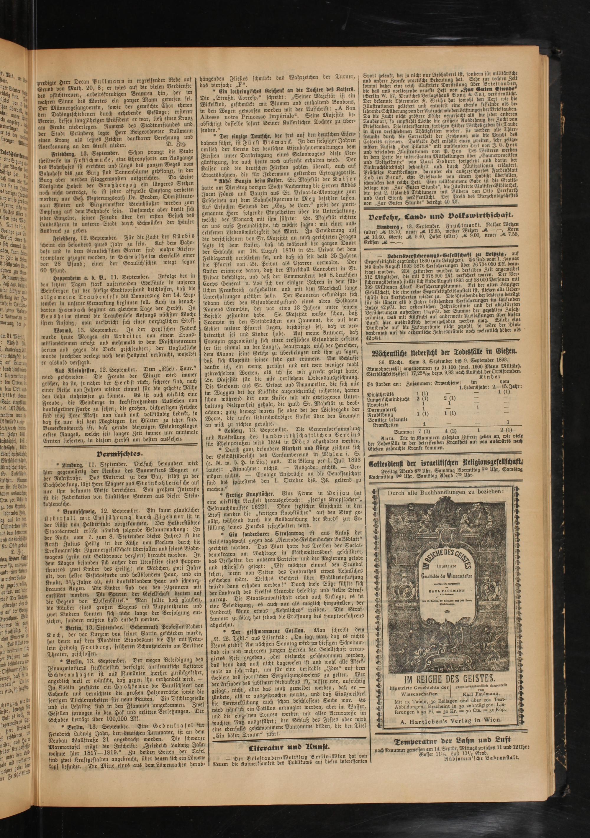 Simtmr«, 13. September. Fruchtmarkt. Rother Weizm (alter) JL 13.70, neuer X 12.85, weißer Weizen