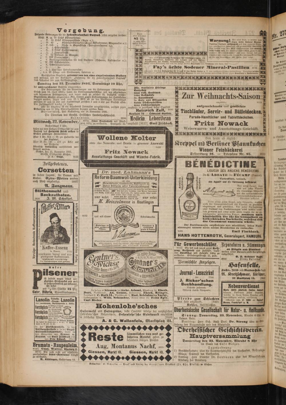 Gießen, den 15. November 1893. Grohh. OrtSgericht Gießen.