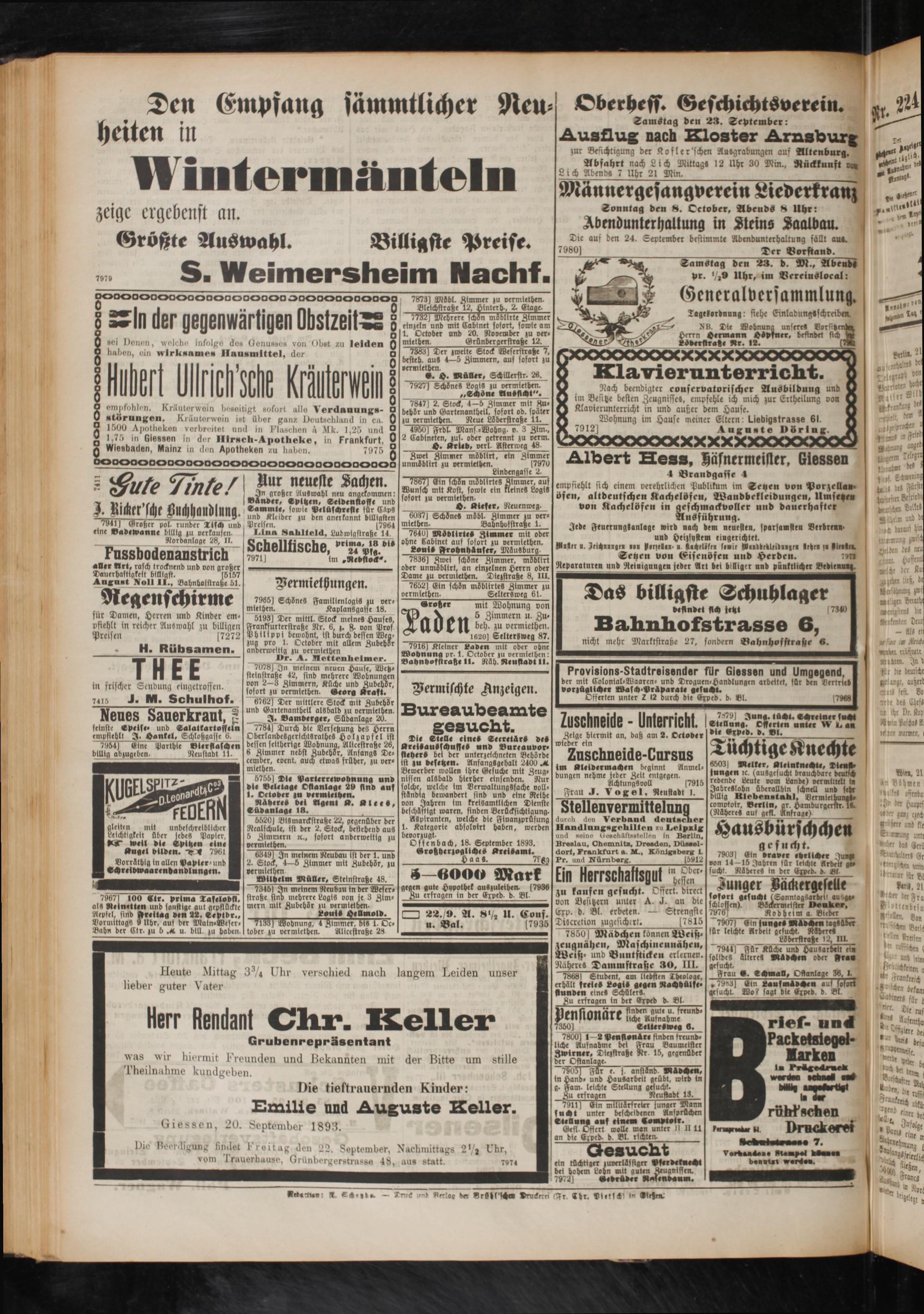 Die Beerdigung findet h reitag den 22. September, Nachmittags 2*/| Uhr, vom 1 rauerhause, Grünbergerstrasse 48, aus statt. 7974