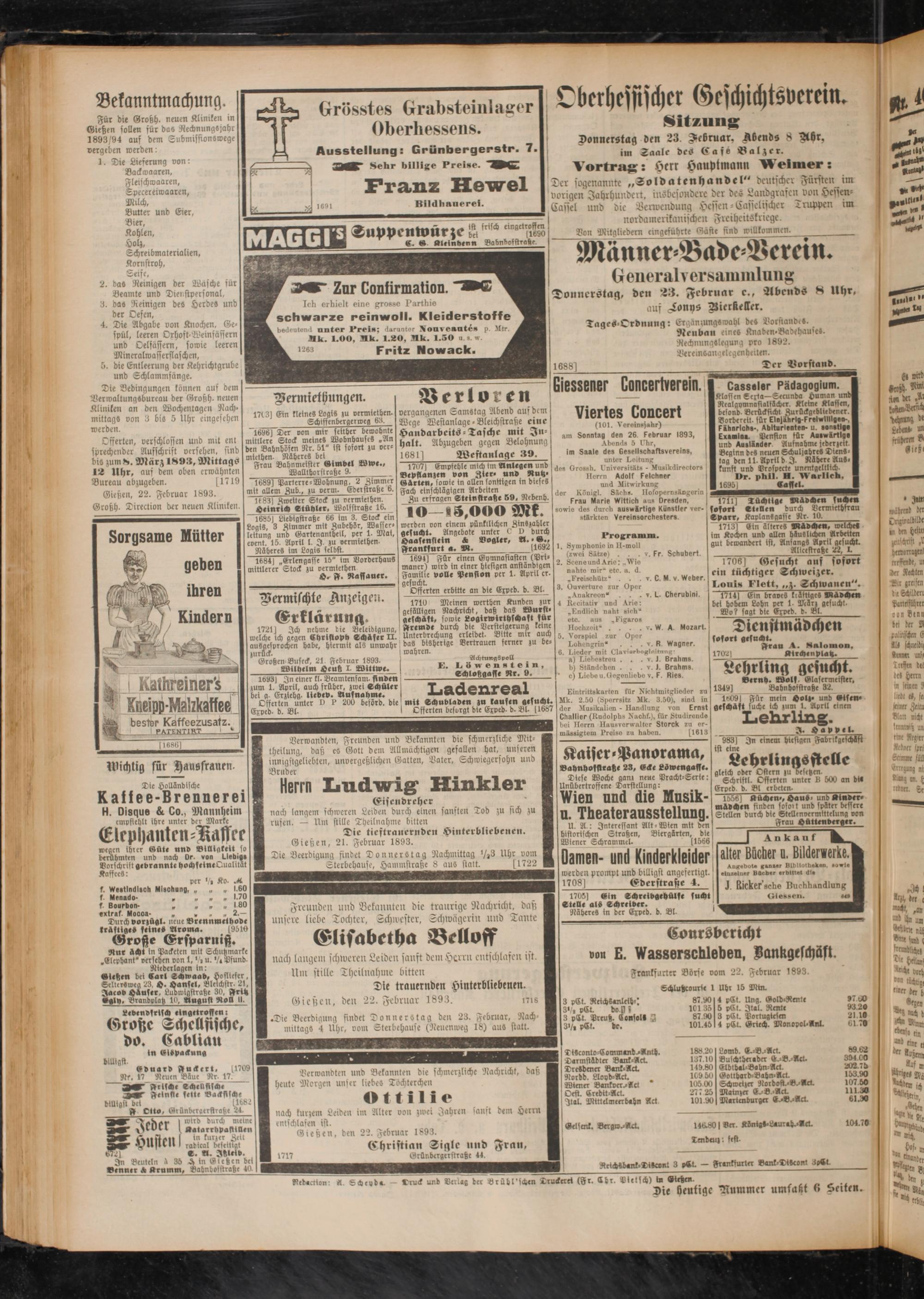 Gießen, den 22. Februar 1893.