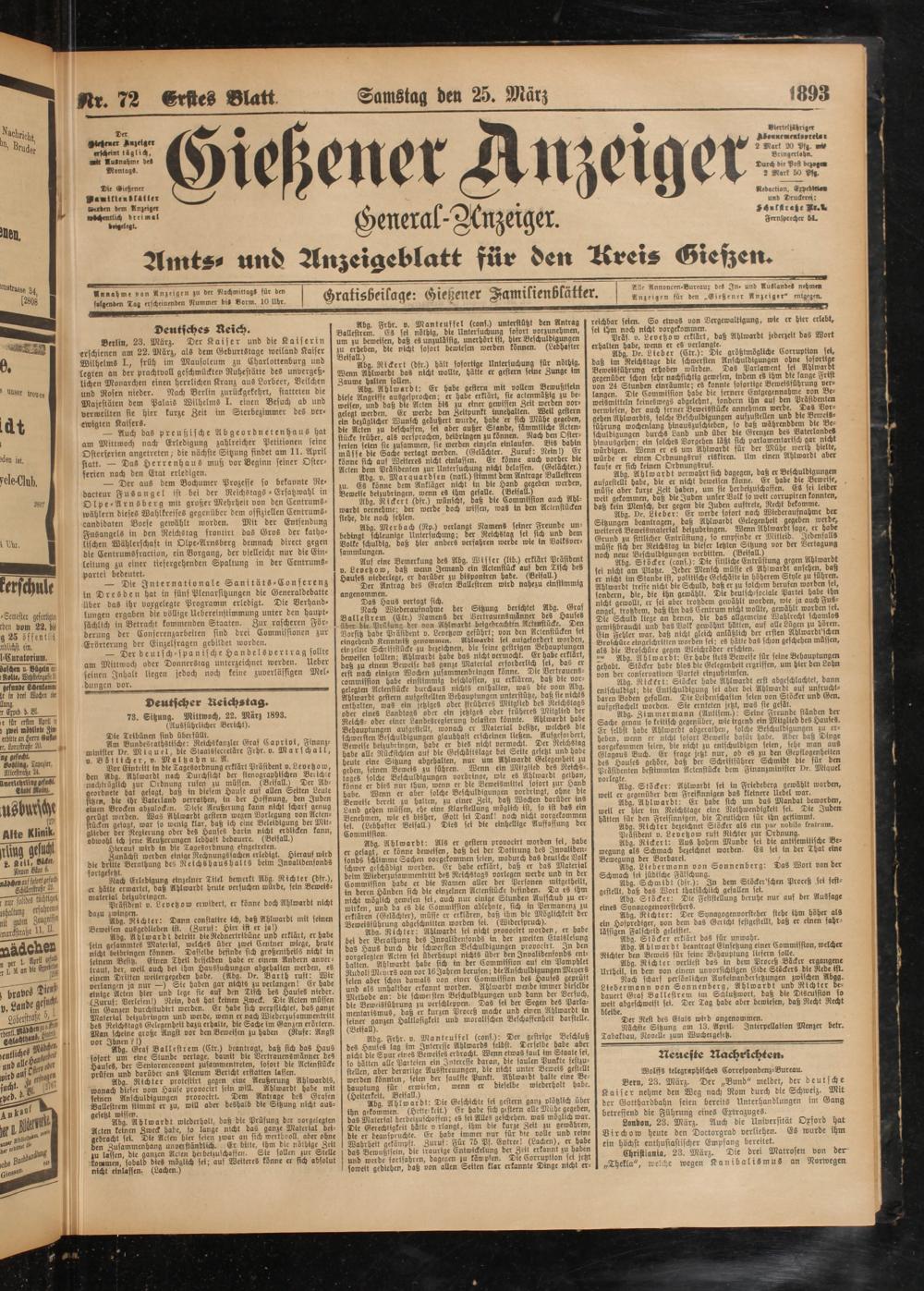73. Sitzung. Mittwoch, 22. März 1893. (Ausführlicher Bericht).