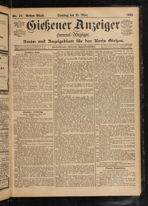 Die Gießener »»«ikienSttiter Sarden dem Anzeiger »Kchenilich dreimal d «gelegt.