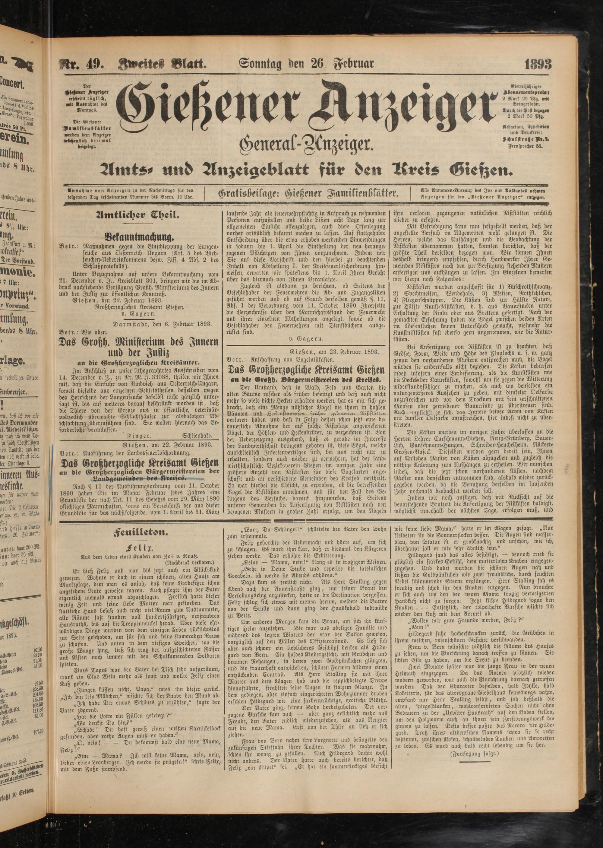 Gießen, den 22. Februar 1893.