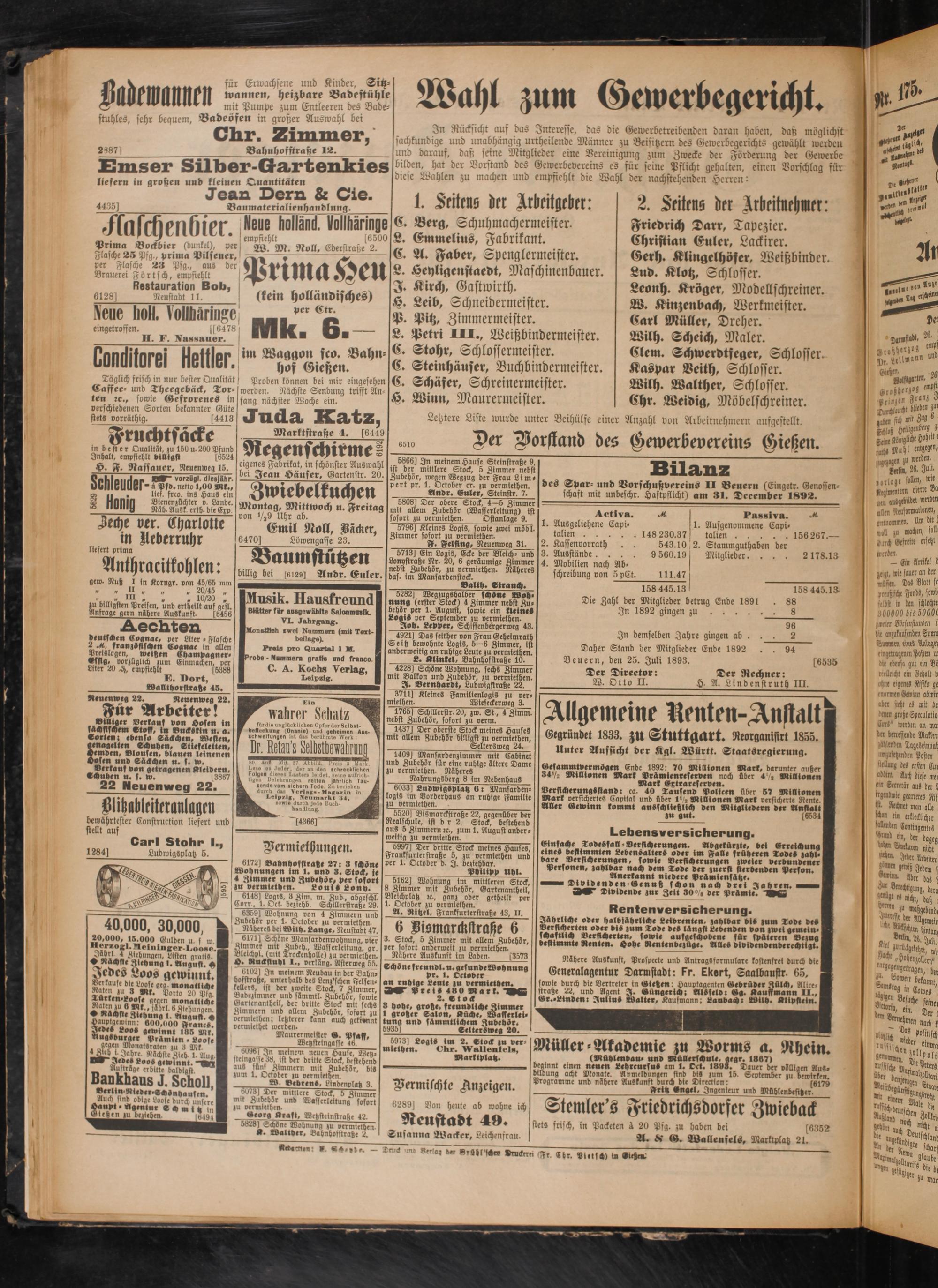 Daher Stand der Mitglieder Ende 1892 Beuern, den 25. Juli 1893.