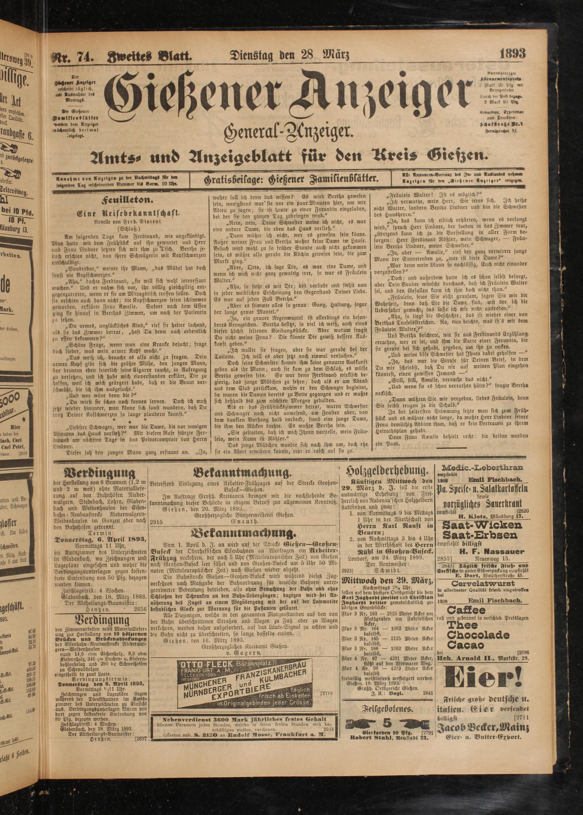 Rr. 74. Zweit«» Blatt. Dienstag de- 28 März