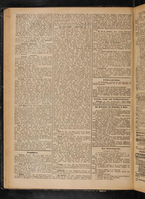 Milzbrand wurde festgestellt in Bellersheim, KretS Gießen, am 25. Juni bet einem crepirten Pferde, in Unter WtdderShetm und Echzell, Kreis Büdingen, am 25. und 29., tn Assenhetm, Kreis Friedberg, am 29. Juni bet je einem crepirten Rinde.