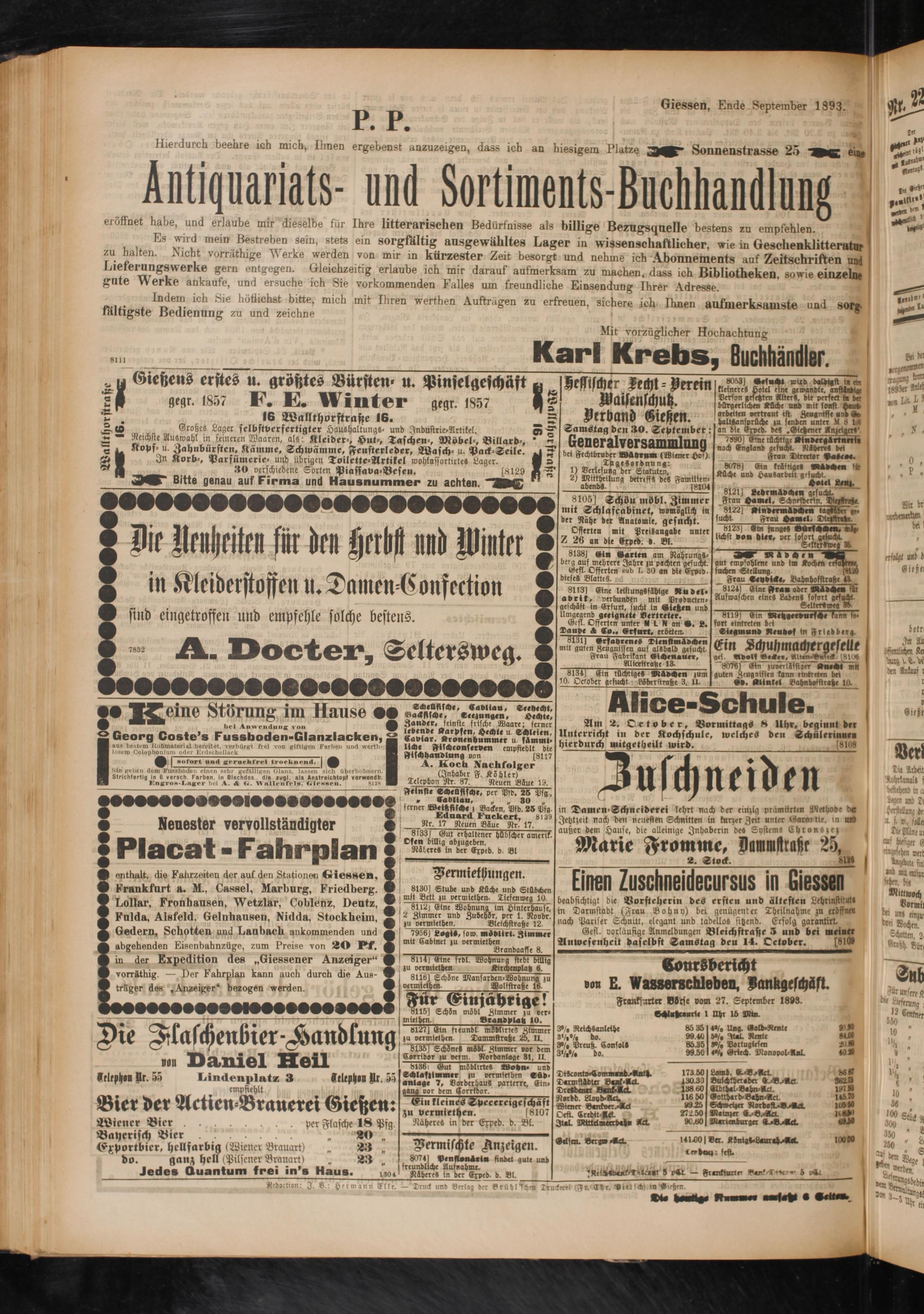 Hierdurch beehre ich mich, Ihnen ergebens! anzuzeigen, dass ich an hiesigem Platze 3^* Sonnenstrasse 25 -M« ei