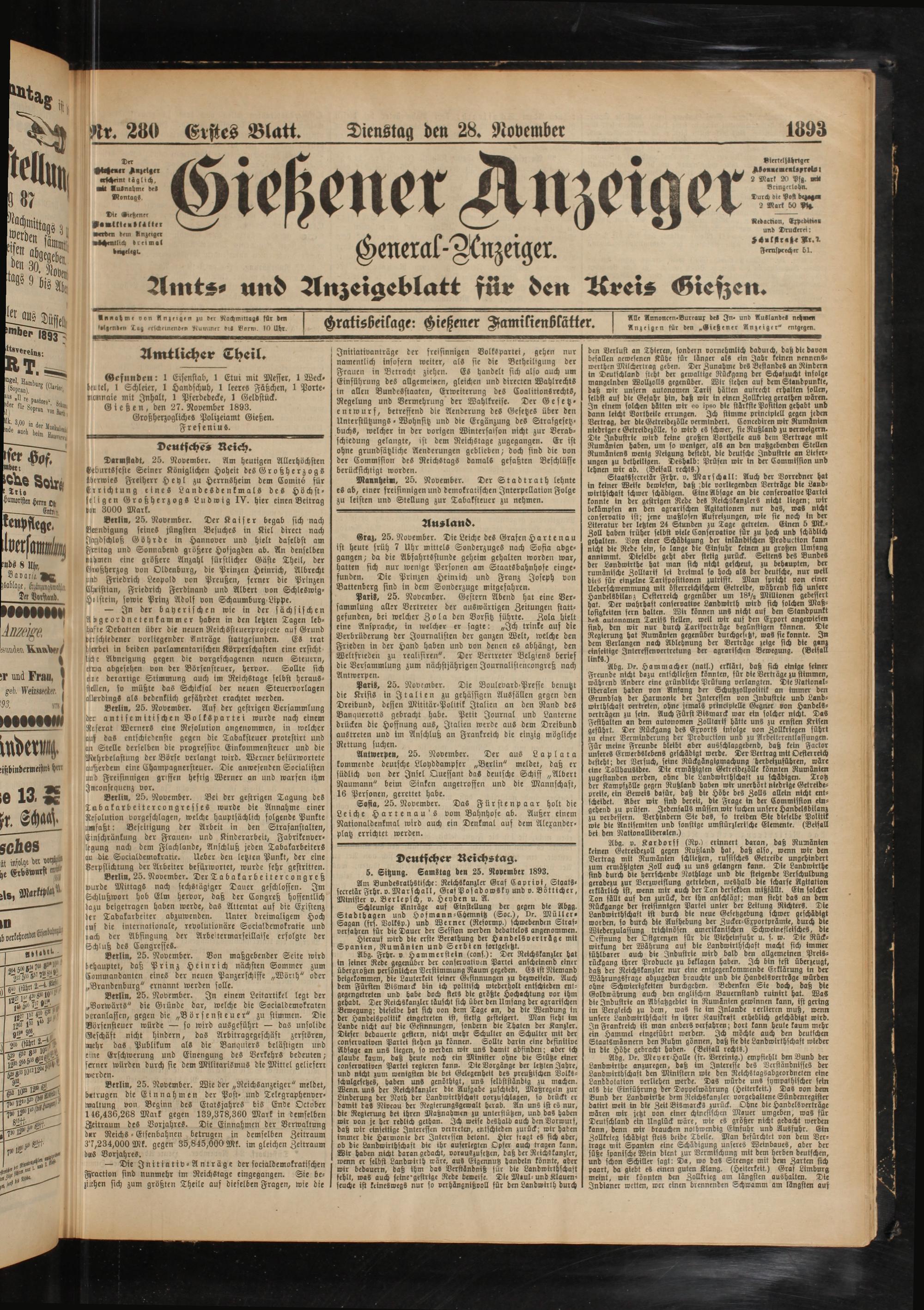 Amts- und Anzeigeblutt für den Ttveis Gieszen