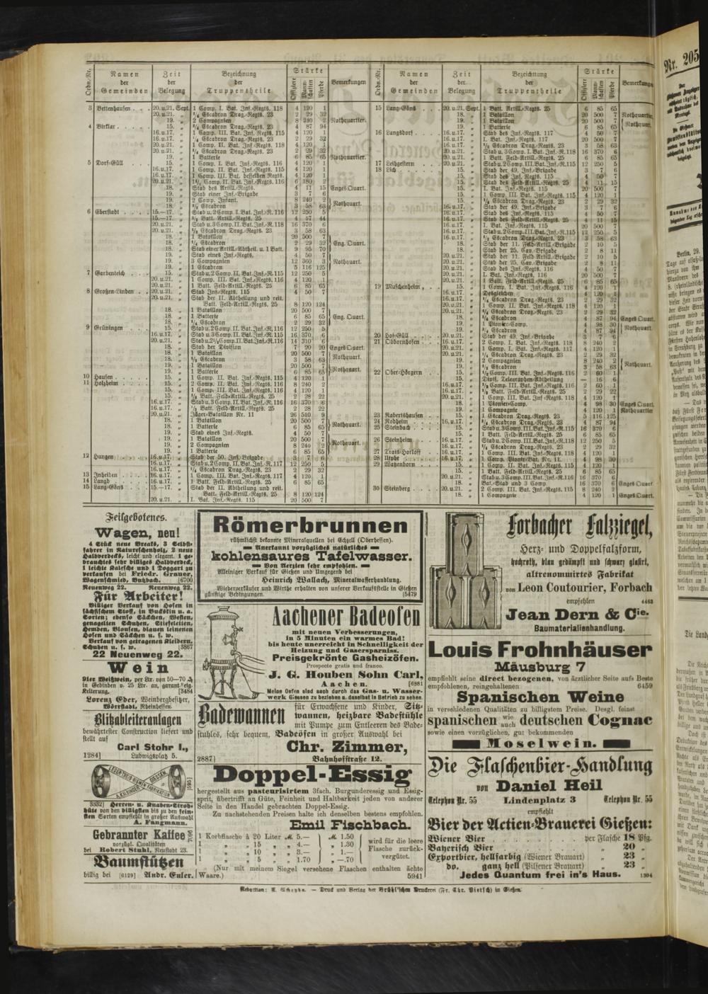 1 Batt. Feld-Artill.-RegtS. 25 Stabu.3Eomp. III.Bat.Inf -R.116 Bat.-Stab und 3 Eomv