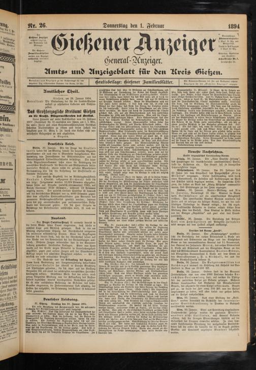 Die Gießener Aamilieuökätter werden dem Anzeiger wöchentlich dreimal beigelegt.