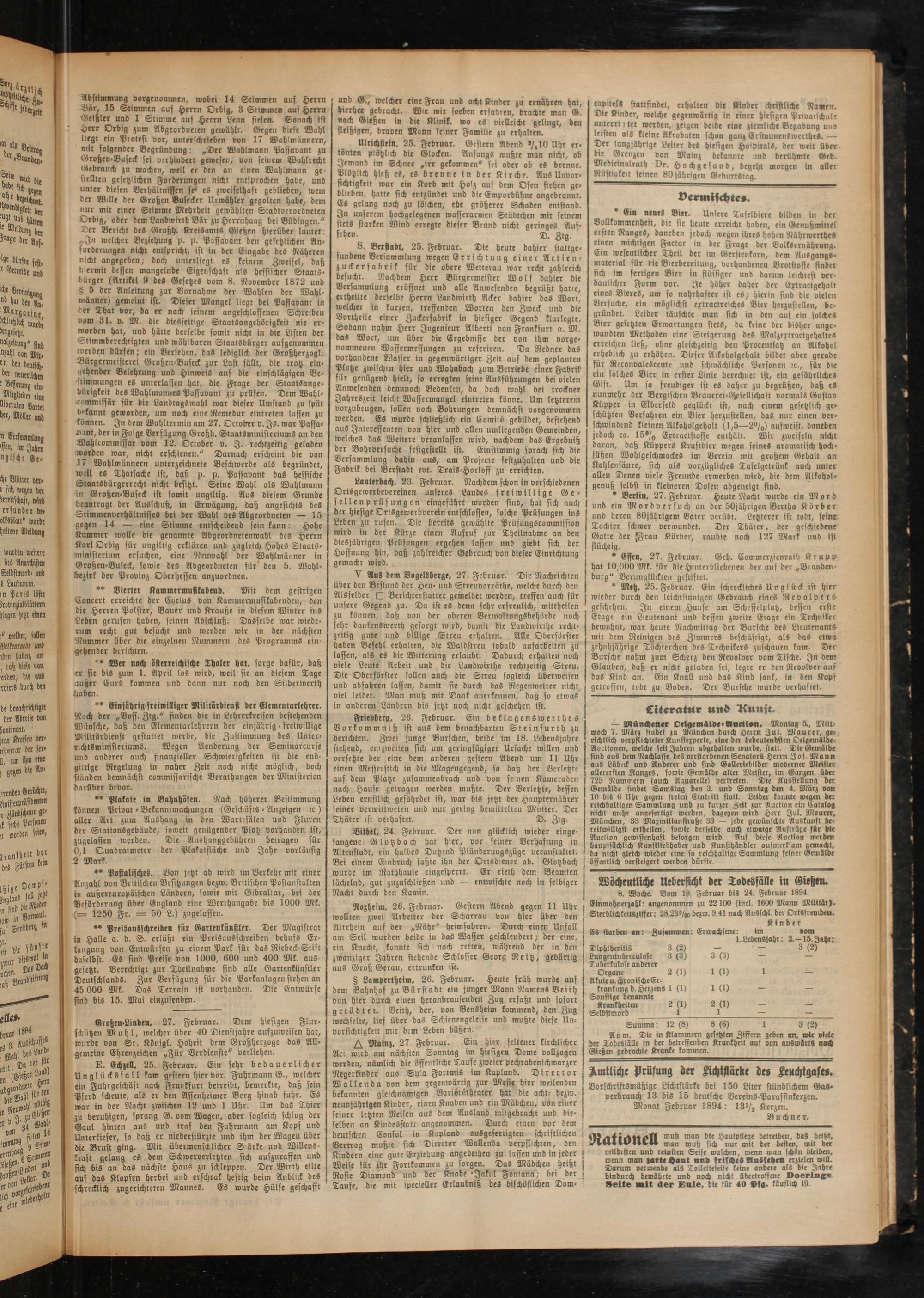 Anm. Die in Klammern gefetzten Ziffern geben an, wie viele ber Todesfälle in ber betreffenben Krankheit auf von auswärts nach Gießen gebrachte Kranke kommen.