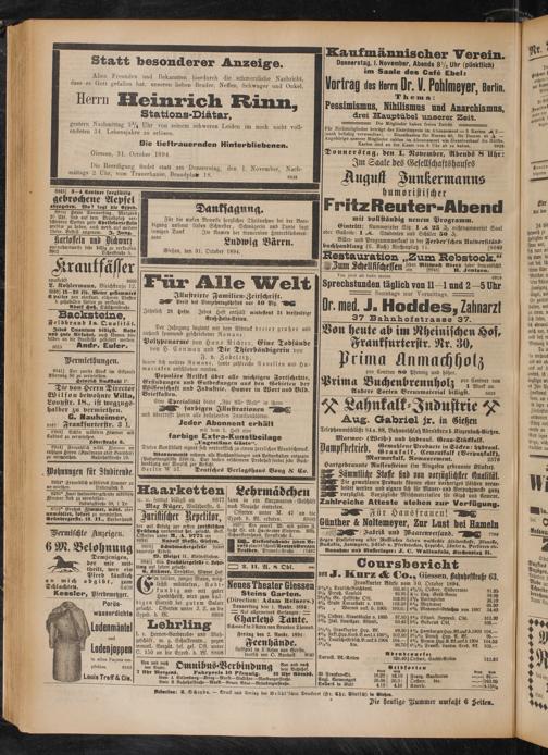 Von heute ab im Rheinischen.tzos, Franksnrterstr. Rr. 30,