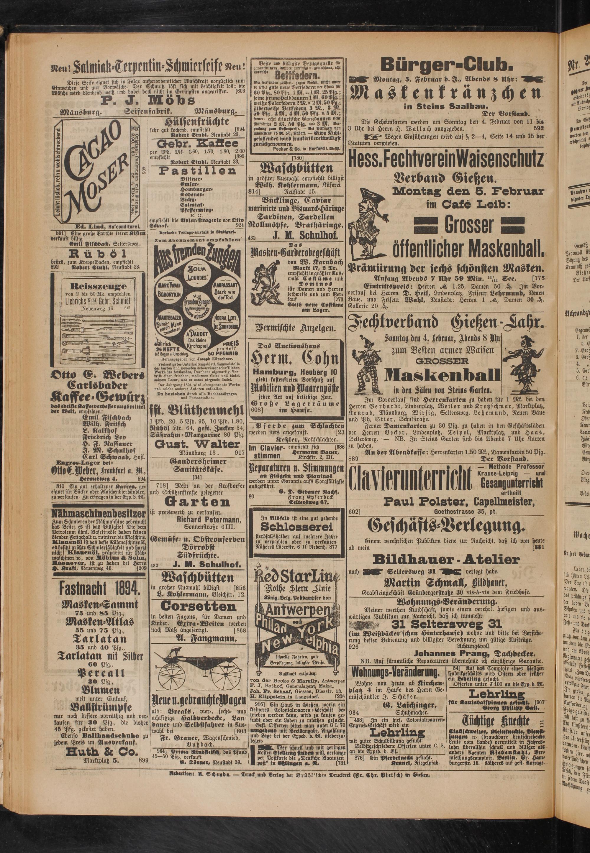 Redactioni ». Scheyd». — Druck und verleg der «rübl'scben Druckerei (Fr. Ehr. Pietsch) tn Gießen.