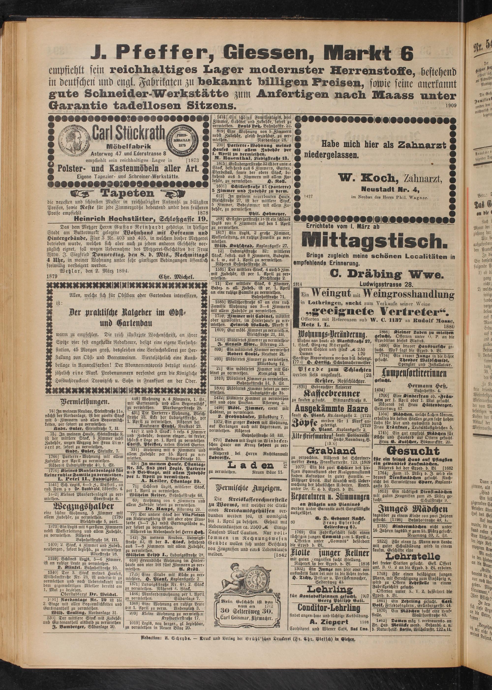1759] Zimmer mit Eabtnet, möblirt ober unmoblirt, im Hinterhause zu ver- miethcn. Heinrich Wallach, Markt 8