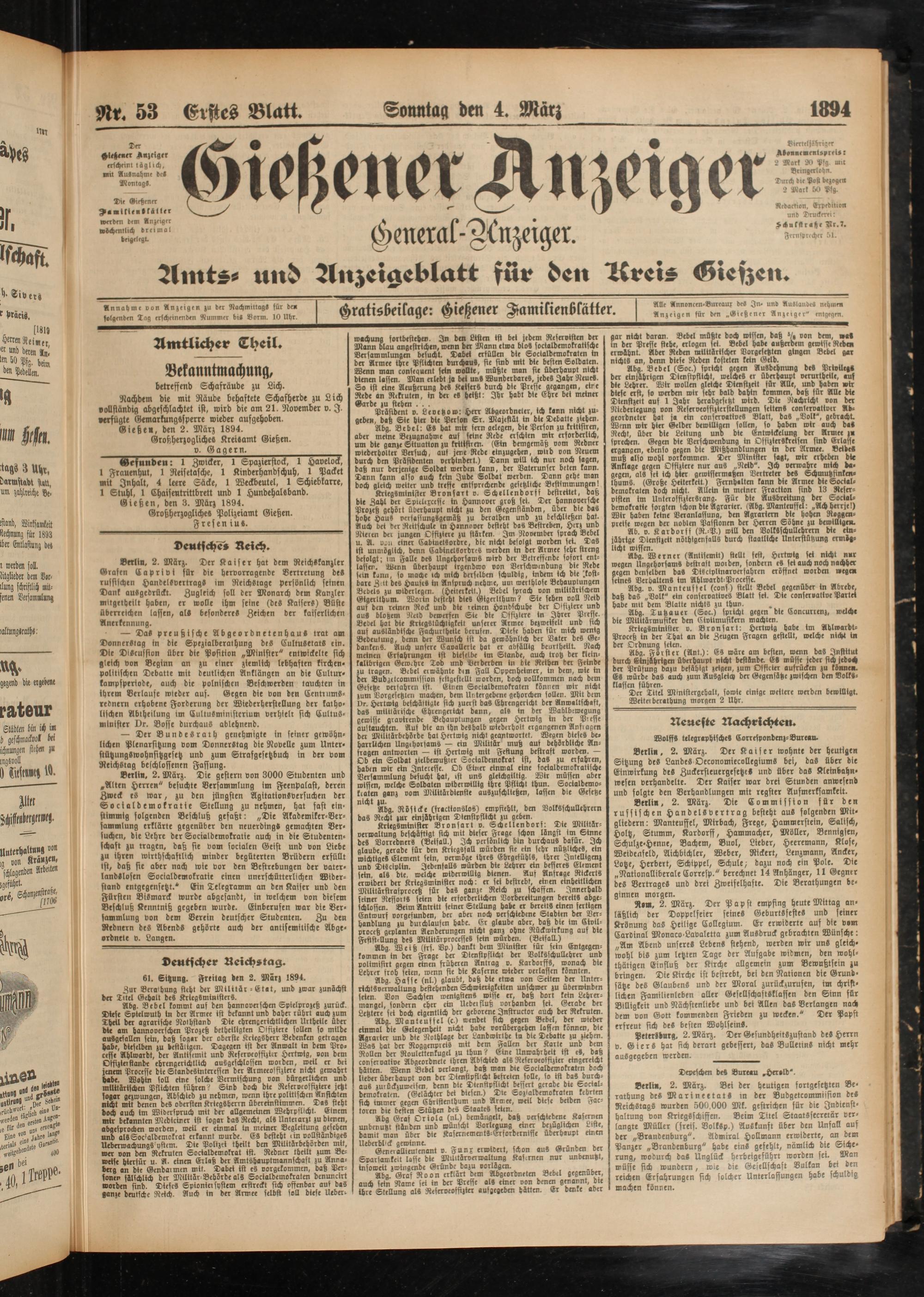 Alle Annoncen-Bureaux beS In- und Auslandes nehme» Anzeigen für den „Gießener Anzeiger" entgegen.
