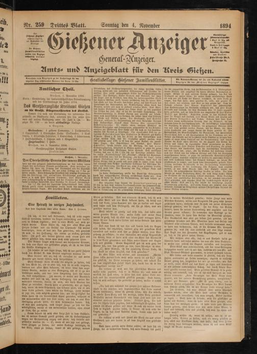 Nr. 259 Drittes Blatt. Sonntag den 4. November 1894