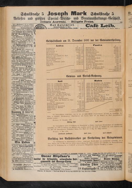 Geschäftsstand am 31. December 1893 vor der Gewinnvertheilung