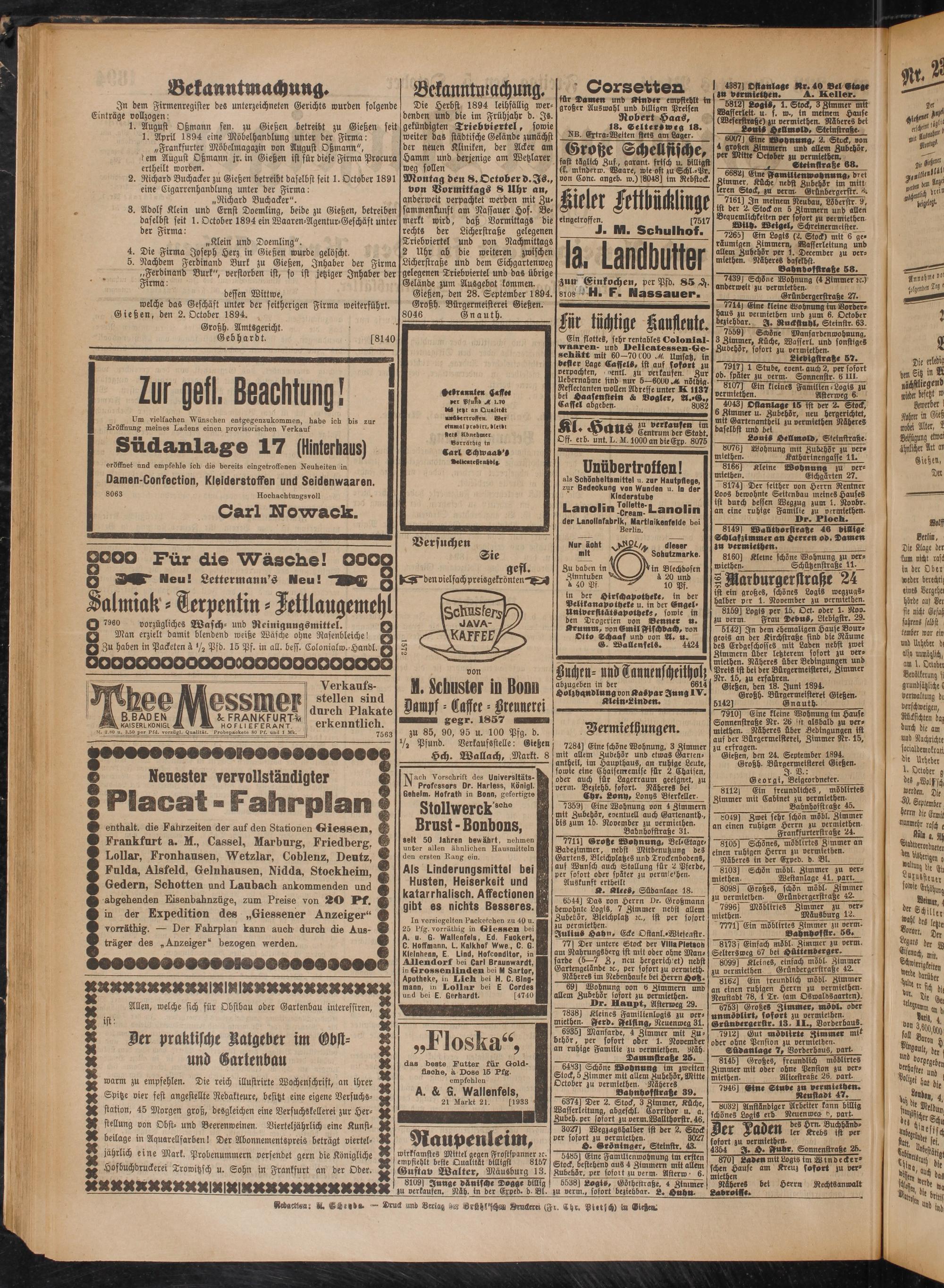 Gießen, den 28. September 1894. Großh. Bürgermeisterei Gießen.