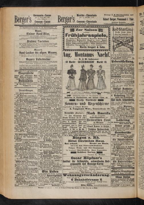 von der Becke & Marsily, Antwerpm. E*. J. Bothof, Generalagent, Mainz. Job. Fr. Schaaf, Giessen, Diezstr. 18. H. Klippstein in Langadorf.[206
