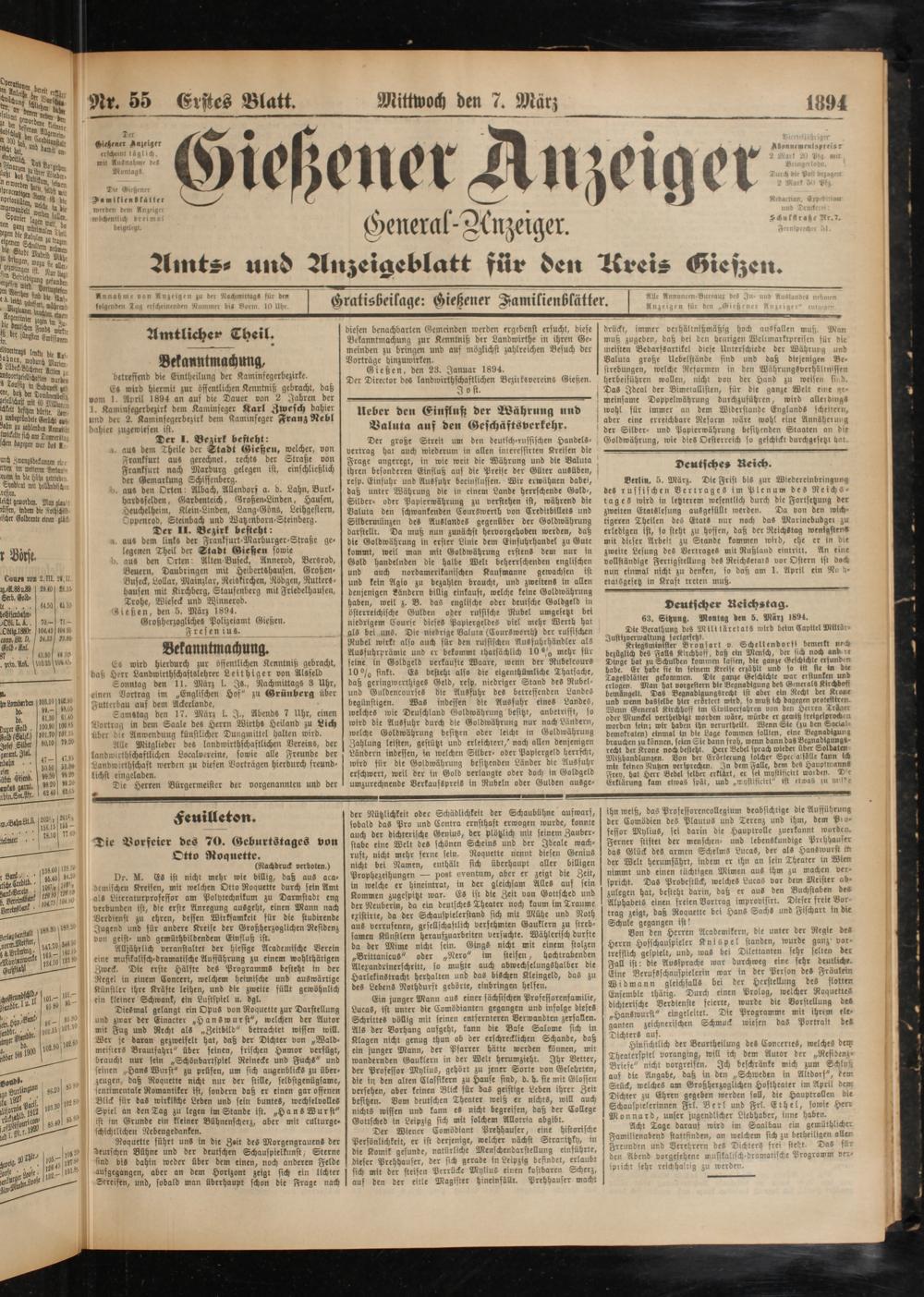 9!r. 55 Erstes Blatt.Mittwoch den 7. März 1894