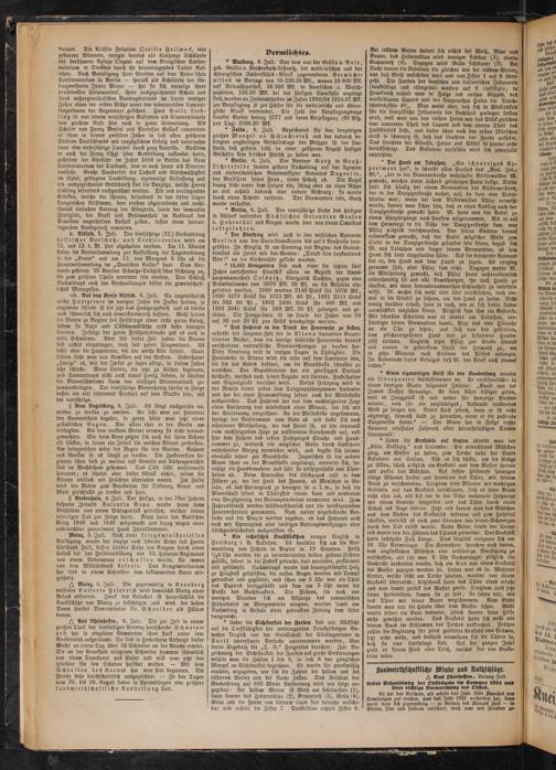 Es hat den Anschein, als würde das Jahr 1894 Manches von Demjenigen gut machen, was das Jahr 1893 verdorben hat, denn wenn man sich gegenwärtig — zu Anfang des Monats Juli — in Wiesen, Flur und Feldern umschaut, muß man mit Freuden ge-