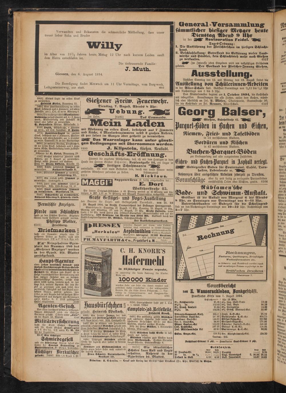 Giessen, den 6. August 1894.