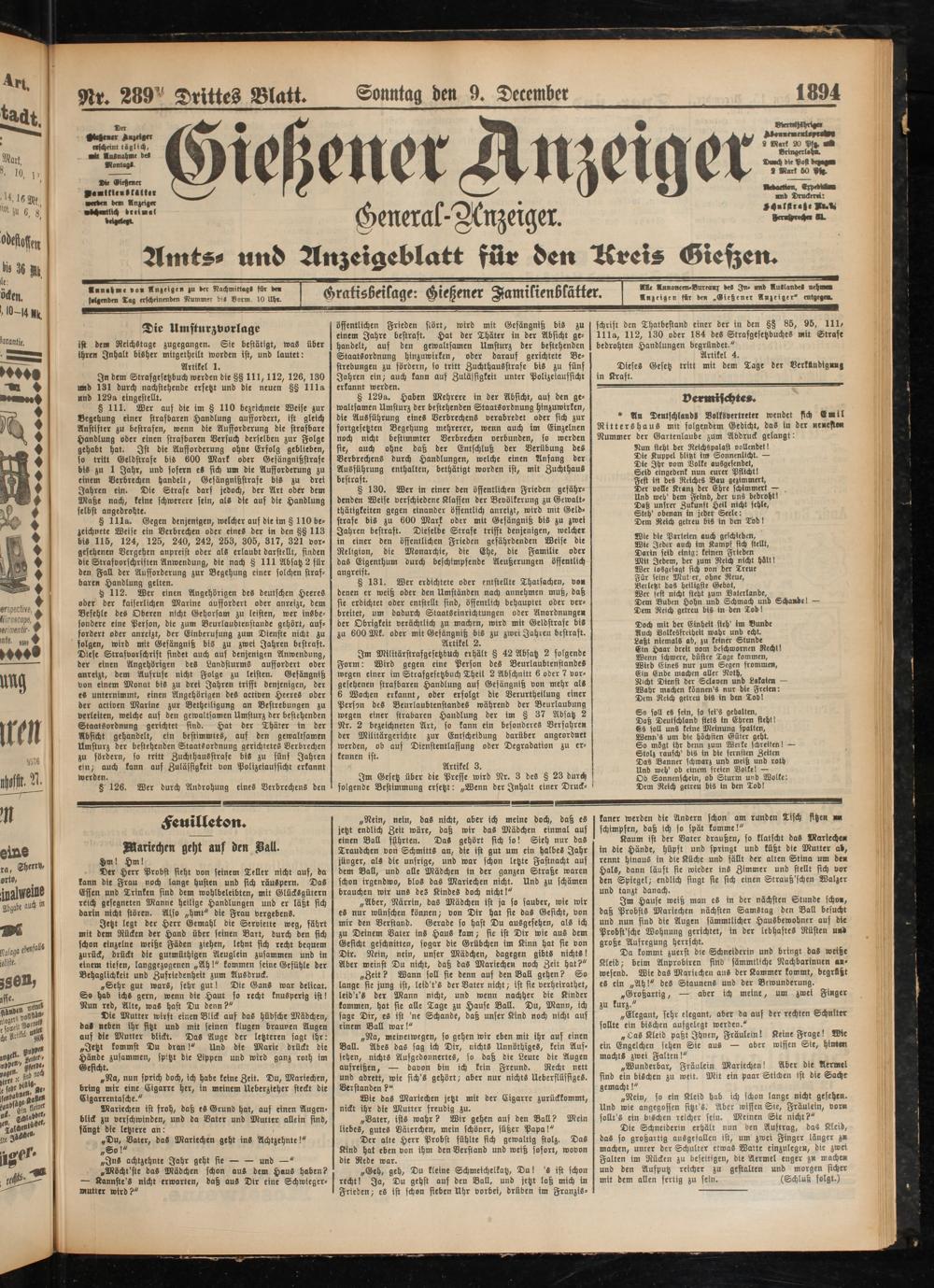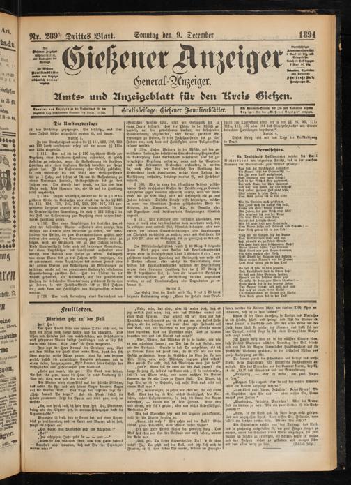 Nr. 289 Drittes Blatt. Sonntag den 9. December