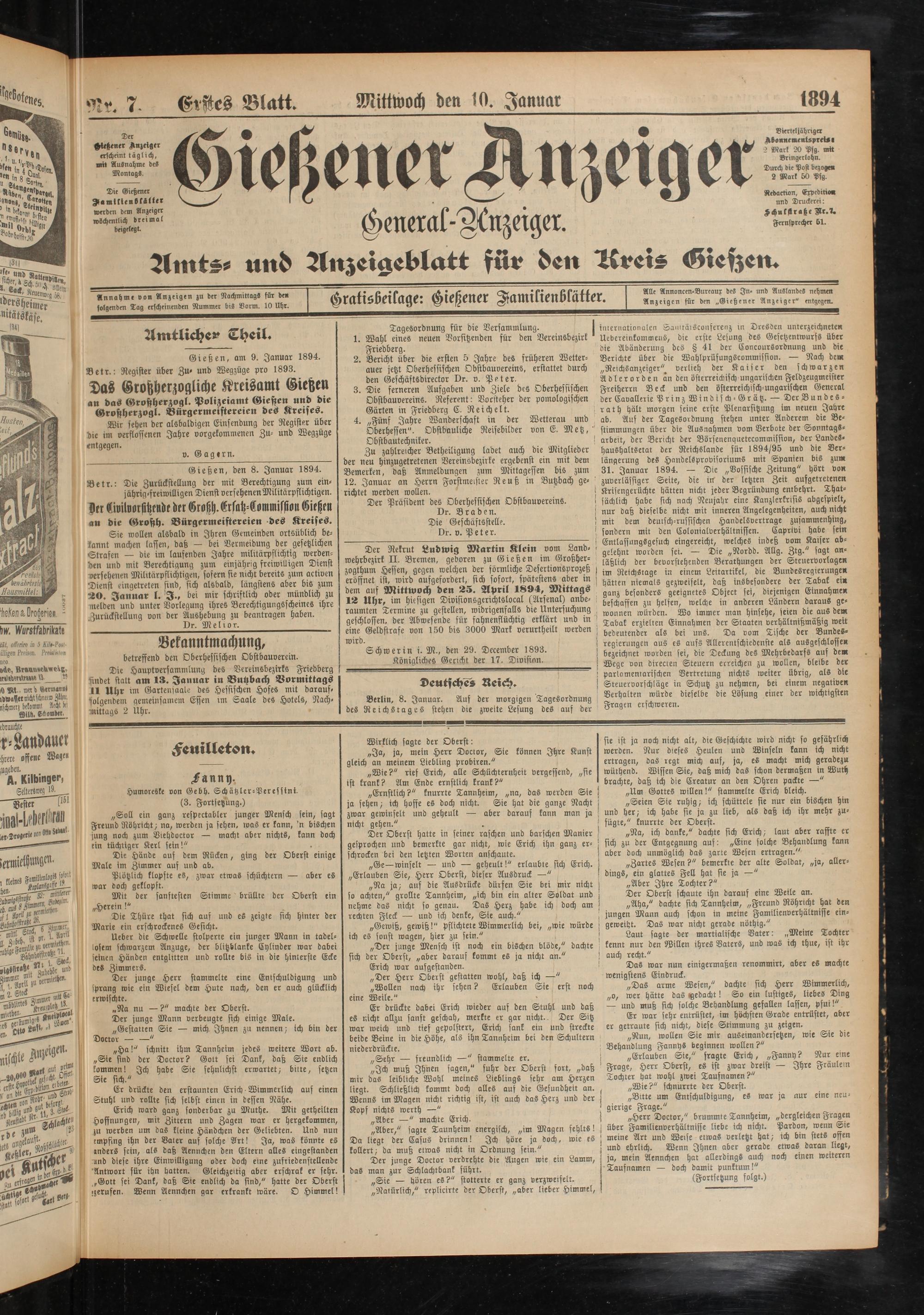 Nr. 7. Erstes Blatt. Mittwoch den w. Januar
