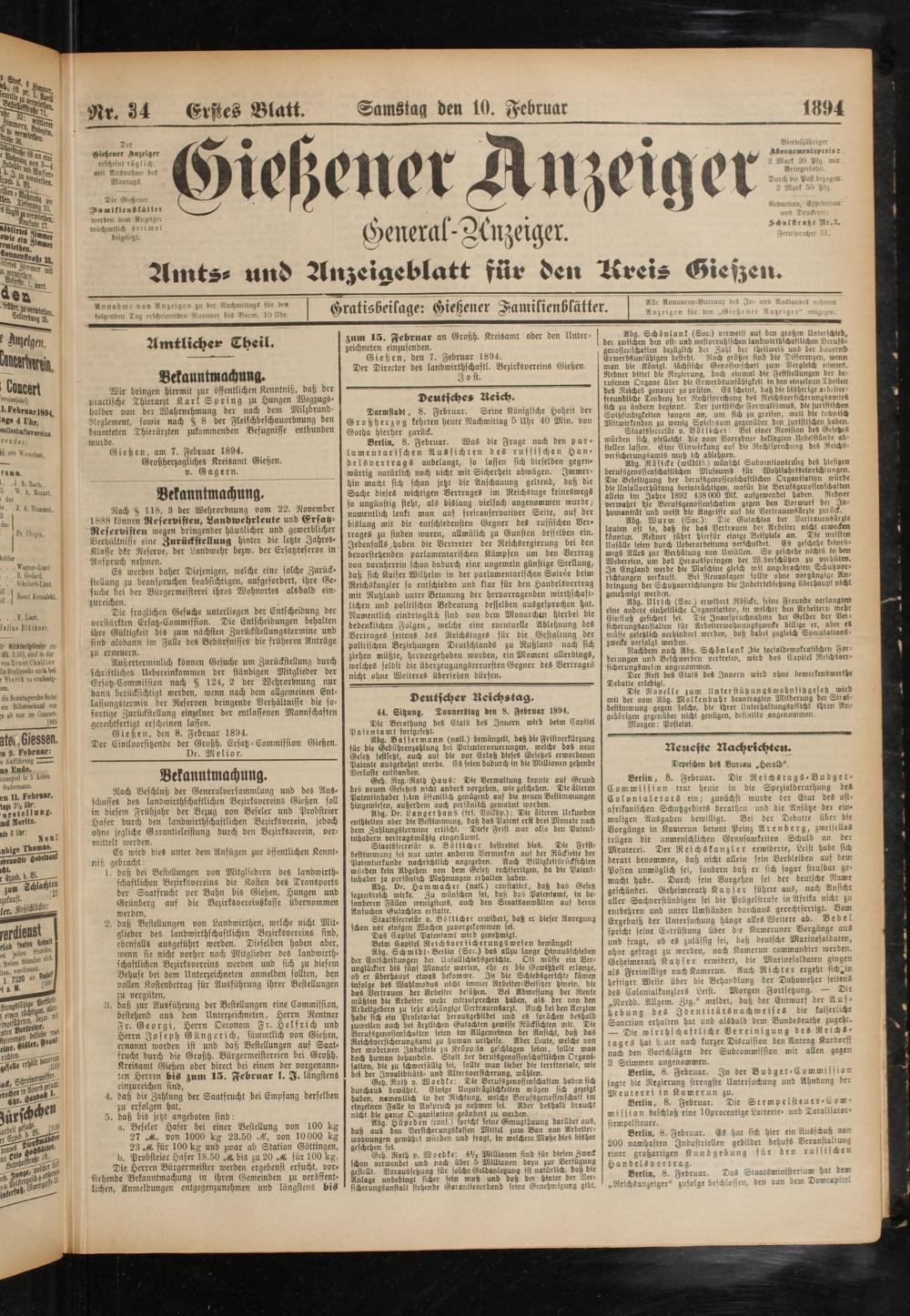 Die Gießener 3»a mi fien ß f ä 11er werden dem Anzeiger wöchentlich dreimal beigelegt.