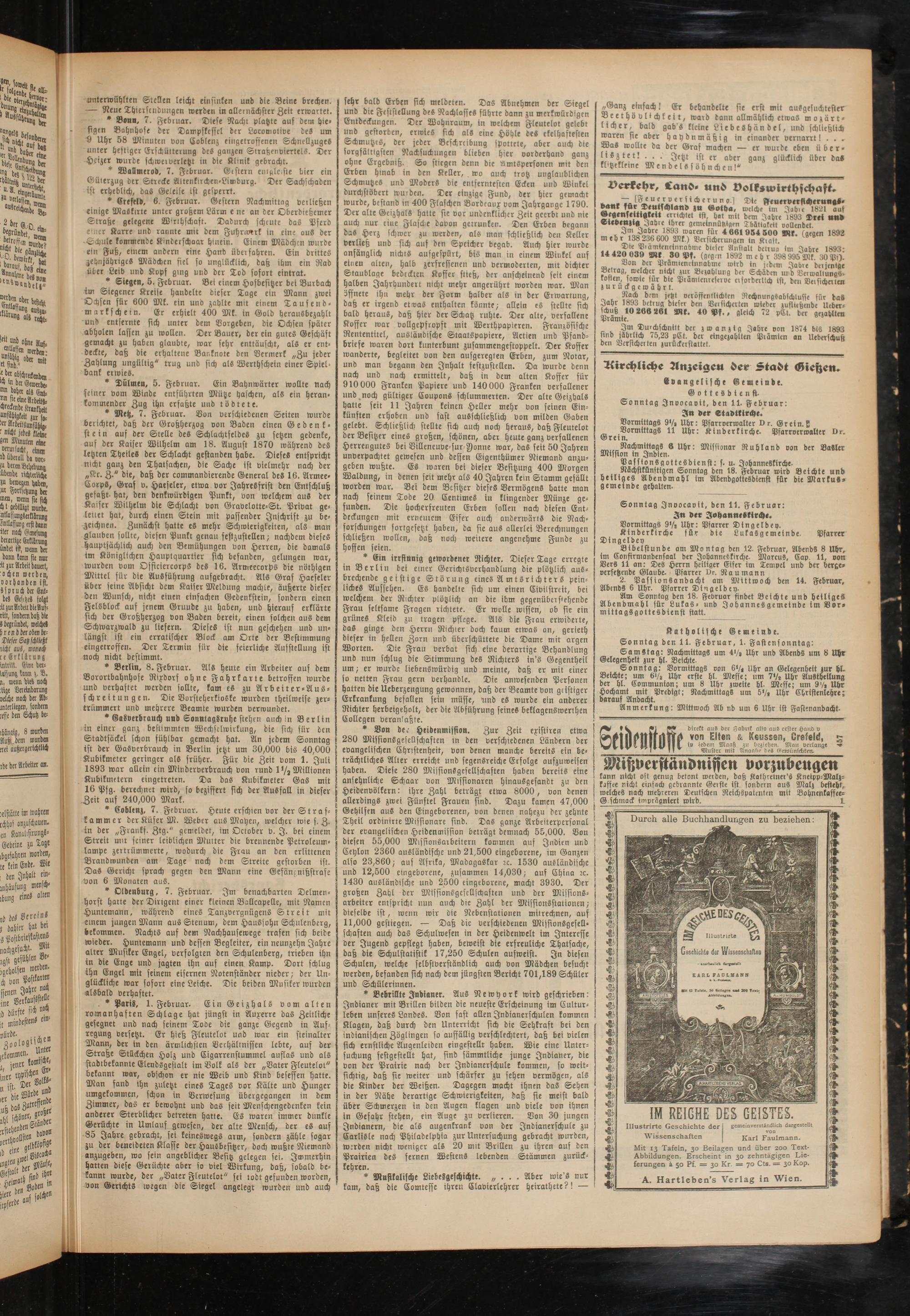 kirchliche Anzeigen der Stadt Gietzen.