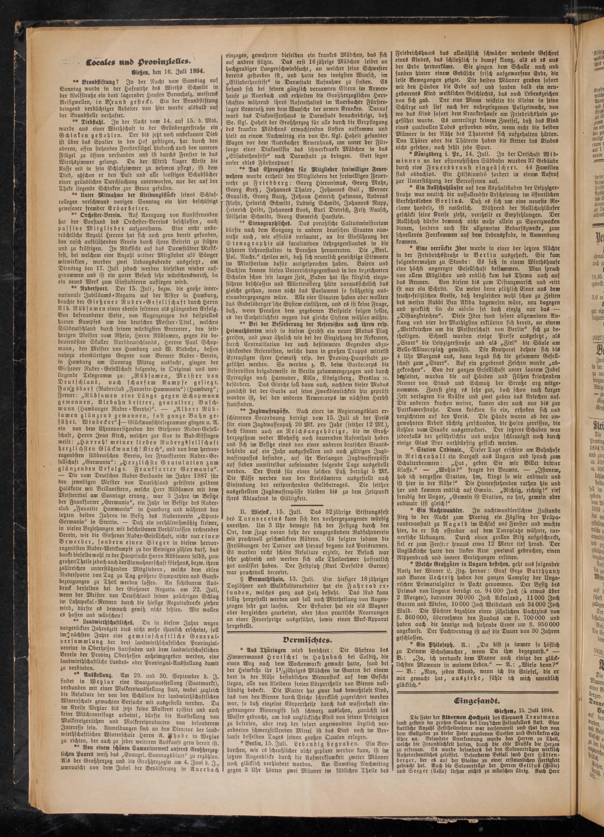 *♦ Brandstiftung? In der Nacht vom SamStag auf Sonntag wurde in der Hofraithe des Wirths Schmidt in der Wolfstraße ein dort lagernder Haufen Brennholz, meistens Reisigwellen, in Durand gesteckt. Ein der Brandstiftung dringend verdächtiger Arbeiter von hier wurde alsbald auf der Brandstelle verhaftet.