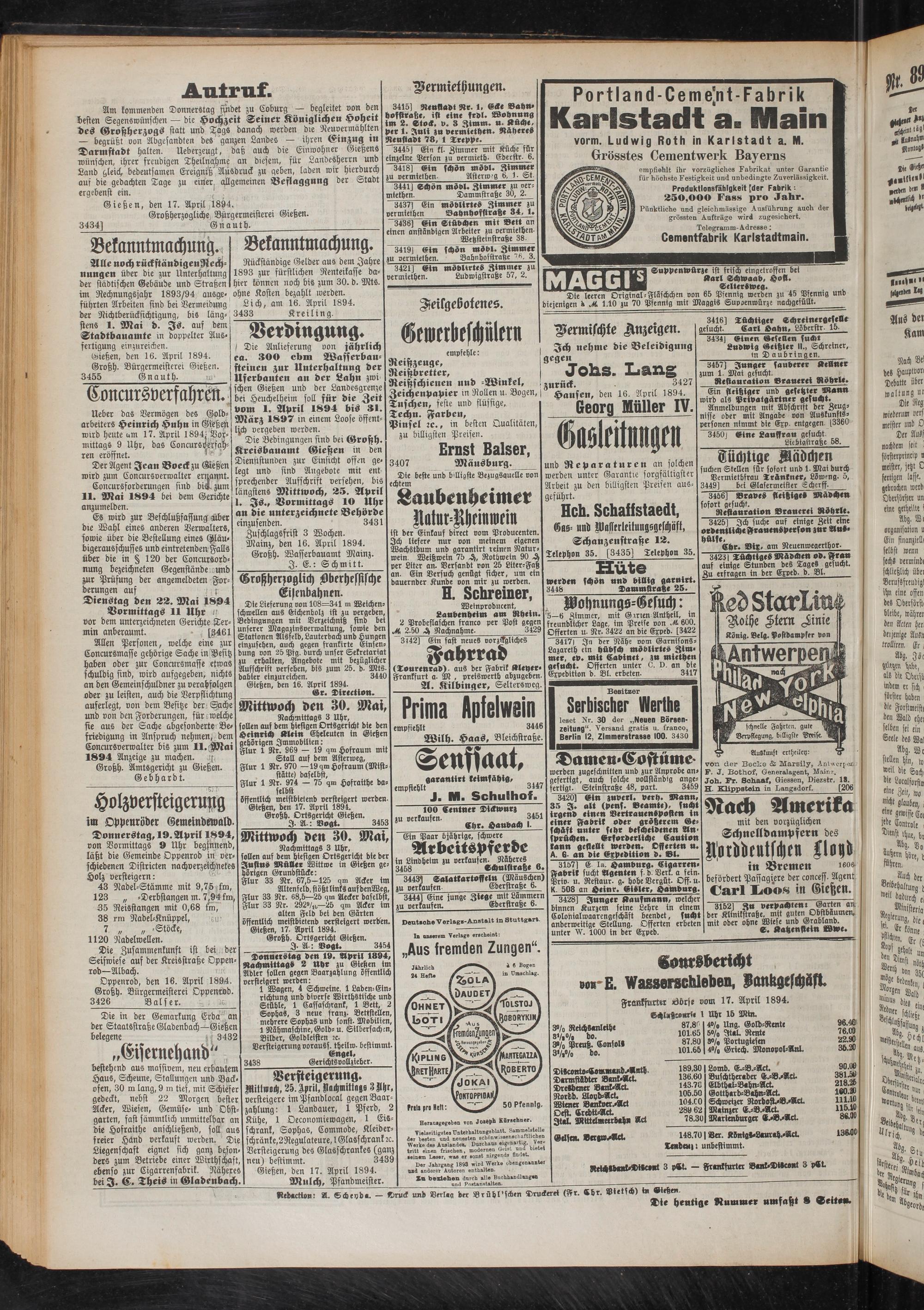 öffentlich meistbietend versteigert werden. Gießen, 17. April 1894.