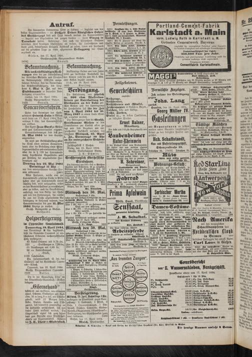 SomSbericht so« E. Wasserschleben, Bankgeschäft. Frankfurter Börse vom 17. April 1894.