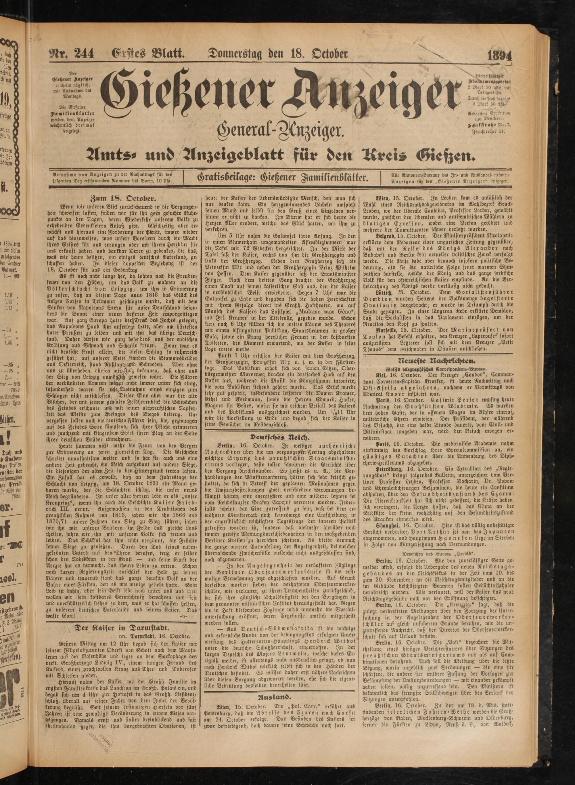Nr. 244 Erstes Blatt. Donnerstag den 18. October