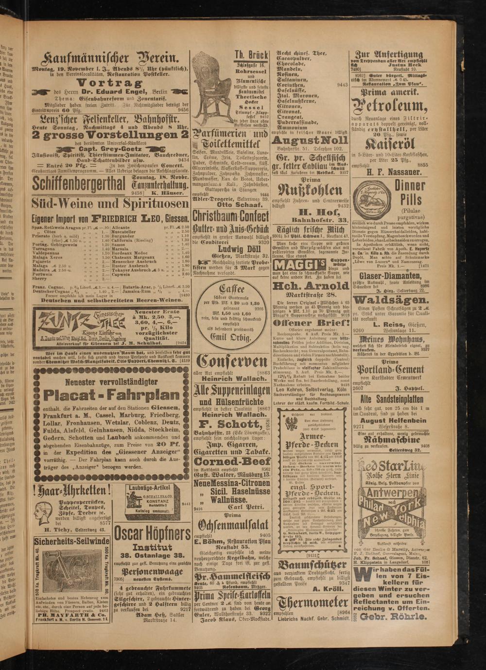 von der Becke L Marelly, Antwerpen E1. J. Bothof, Generalagent, Mainz. Job. Fr. Bohaaf, Giessen, Diezstr. 62.