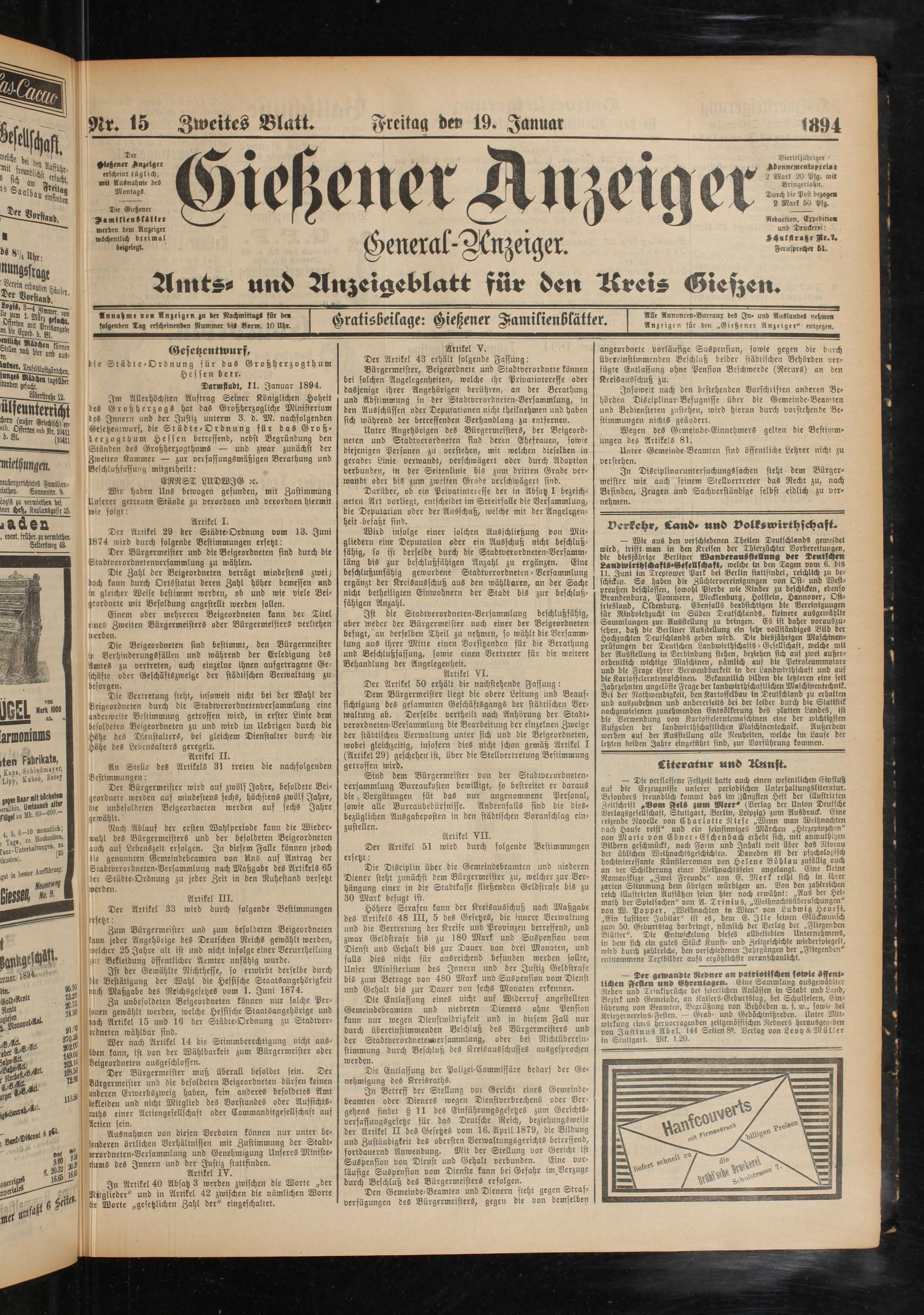 Nr. 15 Zweites Blatt. Freitag dev 19. Januar
