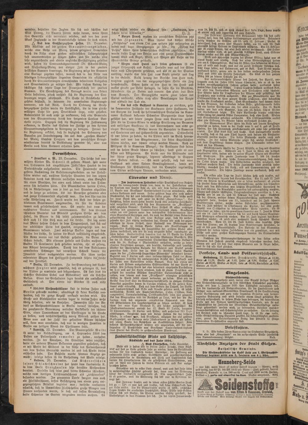 kirchliche Anzeigen der Stadt Giehen.