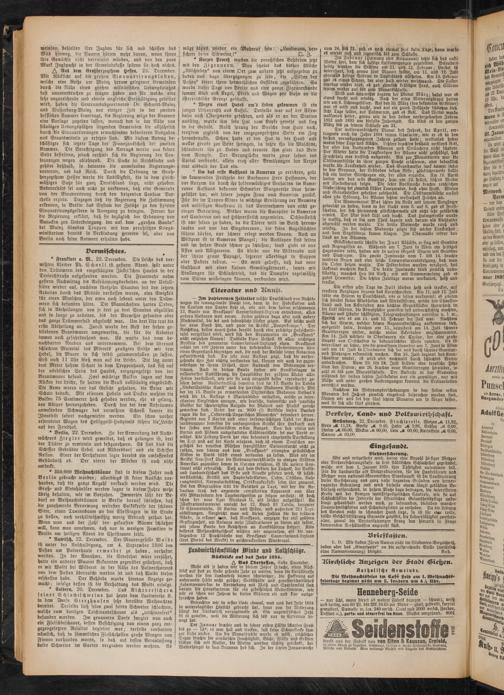 — Am papierene« Zeitalter müßte Deutschland von Rechtswegen die tonangebende Macht fein, denn in der Fabrikation und im Konsum von Papier steht cs, wie wir dem soeben erschienenen 12. Bande von Brockhaus' Conversations-Lexlcon entnehmen, allen andern Nationen weit voran. Leider gehören dazu aber noch andere Machtmittel, die bei uns bedrohliche Lücken zeigen. Auf solche weist der neue Band hin, und zwar im Artikel „Panzerkreuzer". Der Reichstag, dessen neues Heim bereits durch eine prächtige Holzschnitttafel vorgeführt wird, wird sich den Argumenten im „Brockhaus" nicht entziehen können! Dasselbe klare Urtheil ist allen wichtigen Artikeln des genannten Conoersations-Lexicons eigen. Brockhaus wählt feit 100 Jahren unter den bestehenden Lehrmeinungen über einen Gegenstand diejenigen aus, die nach der Ansicht feinet Redaction zukunftsreich sind. Da jede neue Auflage zeigt, dass die vorhergehende ihre Zeit richtig verstanden hat, können wir auch der gegenwärtigen in ihrem Urtheil, ihrer Auswahl von Meinungen vertrauen. Auch in diesem Bande finden wir Kunstbeilagen in vollendetster Ausführung, die Hauptbilder der größten Maler aller Zeiten darstellend, wie wir sie noch nirgends besser reproducirt gesehen haben. Unübertrefflich beweisen dies im 12. Bande die Tafeln „Niederländische Kunst" und die herrliche Madonna Murillo's. Mit der im 13. Bande zu erwartenden Sixtinischen Madonna Raffael's wird die 14. Auflage 4 Marienbilder enthalten, welche zu interessanten Vergleichen anregen, wie deutsche, italienische und spanische Meister der schwierigsten Aufgabe der Malerei und Plastik gerecht geworden sind. Unter den ca. 9000 (!) Artikeln dieses Bandes ragen die der „Oesterreich-Ungarischen Monarchie" besonders hervor. Begleitet von 7 Karten und einer farbenprächtigen Tafel der Kron- landswappeli beweisen die umfangreichen Artikel ihre Herkunft aus der Feder von Autoritäten ersten Ranges. Von den vielen mit Karten und Planen ausgestatteten Städteartikeln sei nur Paris erwähnt. Die Festung Paris hat eine besonders eingehende Darstellung im Text und auf der Karte erfahren, doch ist einem Deutschen angesichts der neuesten Blüthen französischer Spionenfurcht nicht zu rathen, von seinem aus dem „Brockhaus" erlangten gründlichen Wiffen in Paris selbst etwas verlauten zu lassen. Was wir im Artikel Neu-Aork über die Wohnungsverhältnisse in einigen Städten Amerikas gegenüber denen in Europa erfahren, ist für unfern Con- tinent nicht erfreulich. Daß auf dem Gebiete der Technik, der Volksund Landwirthschast das Beste und Neueste geboten wird, ist selbstverständlich; Artikel wie Papierfabrikation, Oefen, Obstbau, Nah- rungsmittel, Normalarbeitstag, Ortskrankenkasse seien hier genannt. Bei den Biographien tritt die Raschheit zu Tage, mit der die Redaction trotz des ungemein complicirten Apparates von über 400 Mitarbeitern den Tagesereignissen zu folgen versteht: ist doch schon der neue Czar Nicolaus II. als solcher aufgesührt! An Jllustrationsmaterial umfaßt der 12. Band 83 Tafeln, darunter 10 Chromotafeln, 26 Karten und Pläne, und außerdem 211 Textabbildungen. Vergleicht man mit diesen Zahlen die der frühem Bände, so erkennt man, daß Brockhaus, entgegen der viel geübten Gepflogenheit, am Anfänge mehr Illustrationen zu bieten als später, mit jedem Bande den Reichthum an Kunstblättern steigert. Kein besseres Weihnachtsgeschenk wüßten wir anzurathen, als die vorliegenden 12 Prachtbände von Brockhaus' Conversalions-Lexicon (drei Piertel des Werks) in geschmackvollem Wandregal.