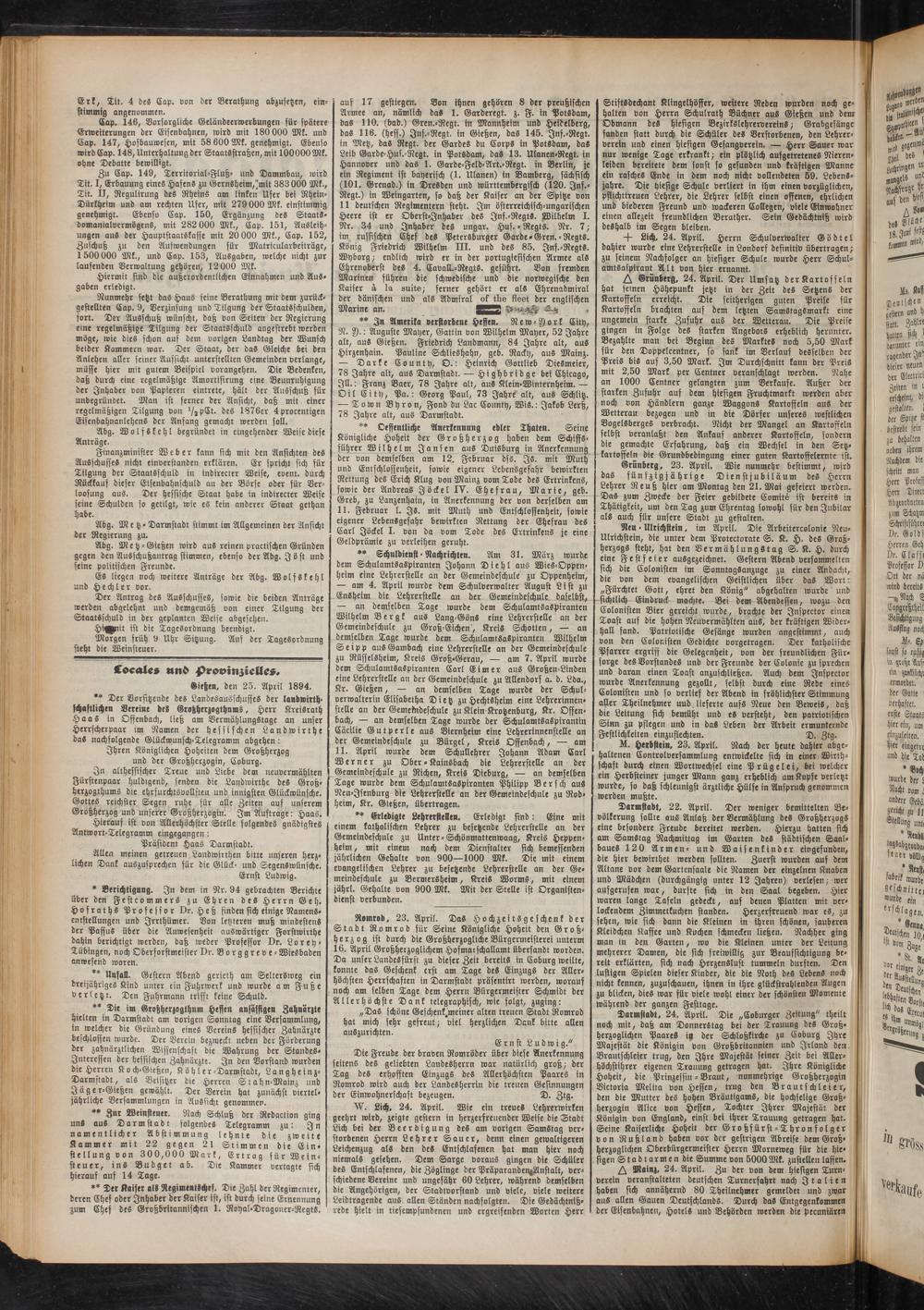 * * Schuldienst - Nachrichten. Am 31. März wurde dem Schulamtsaspiranten Johann Diehl aus Wies-Oppen- heim eine Lehrerstelle an der Gemeindeschule zu Oppenheim, — am 4. April wurde dem Schulverwalter August List zu Ensheim die Lehrerstelle an der Gemeindeschule daselbst, — an demselben Tage wurde dem Schulamtsaspiranten Wilhelm Bergk aus Lang-Göns eine Lehrerstelle an der Gemeindeschule zu Groß-Eichen, Kreis Schotten, — an demselben Tage wurde dem Schulamtsaspiranten Wilhelm Seipp aus Gambach eine Lehrerstelle an der Gemeindeschule zu Rüsselsheim, Kreis Groß-Gerau, — am 7. April wurde dem Schulamtsaspiranten Carl Eimer aus Großen-Linden eine Lehrerstelle an der Gemeindeschule zu Allendorf a. d. Lda., Kr. Gießen, — an demselben Tage wurde der Schulverwalterin Elisabetha Dietz zu Hechtsheim eine Lehrerinnenstelle an der Gemekndeschule zu Klein-Krotzenburg, Kr. Offenbach, — an demselben Tage wurde der Schulamtsaspirantin Cäcilie Gutperle aus Viernheim eine Lehrerinnenstelle an der Gemeindeschule zu Bürgel, Kreis Offenbach, — am 11. April wurde dem Schullehrer Johann Adam Carl Werner zu Ober-Kainsbach die Lehrerstelle an der Gemeindeschule zu Richen, Kreis Dieburg, — an demselben Tage wurde dem Schulamtsaspiranten Philipp Bersch aus Neu-Isenburg die Lehrerstelle an der Gemeindeschule zu Rodheim, Kr. Gießen, übertragen.
