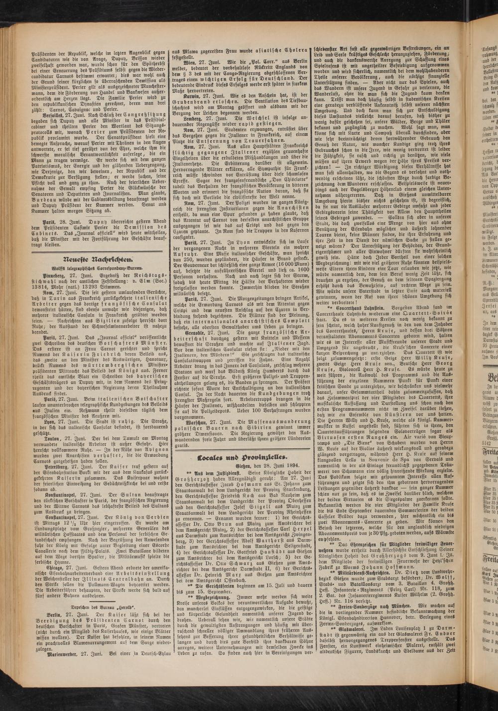 Paris, 28. Juni. Dupuy überreichte gestern Abend dem Präsidenten Casimir Perier die Demission des Cabinets. Das „Journal officiell" wird heute mittheilen, daß die Minister mit der Fortführung der Geschäfte beauftragt bleiben.