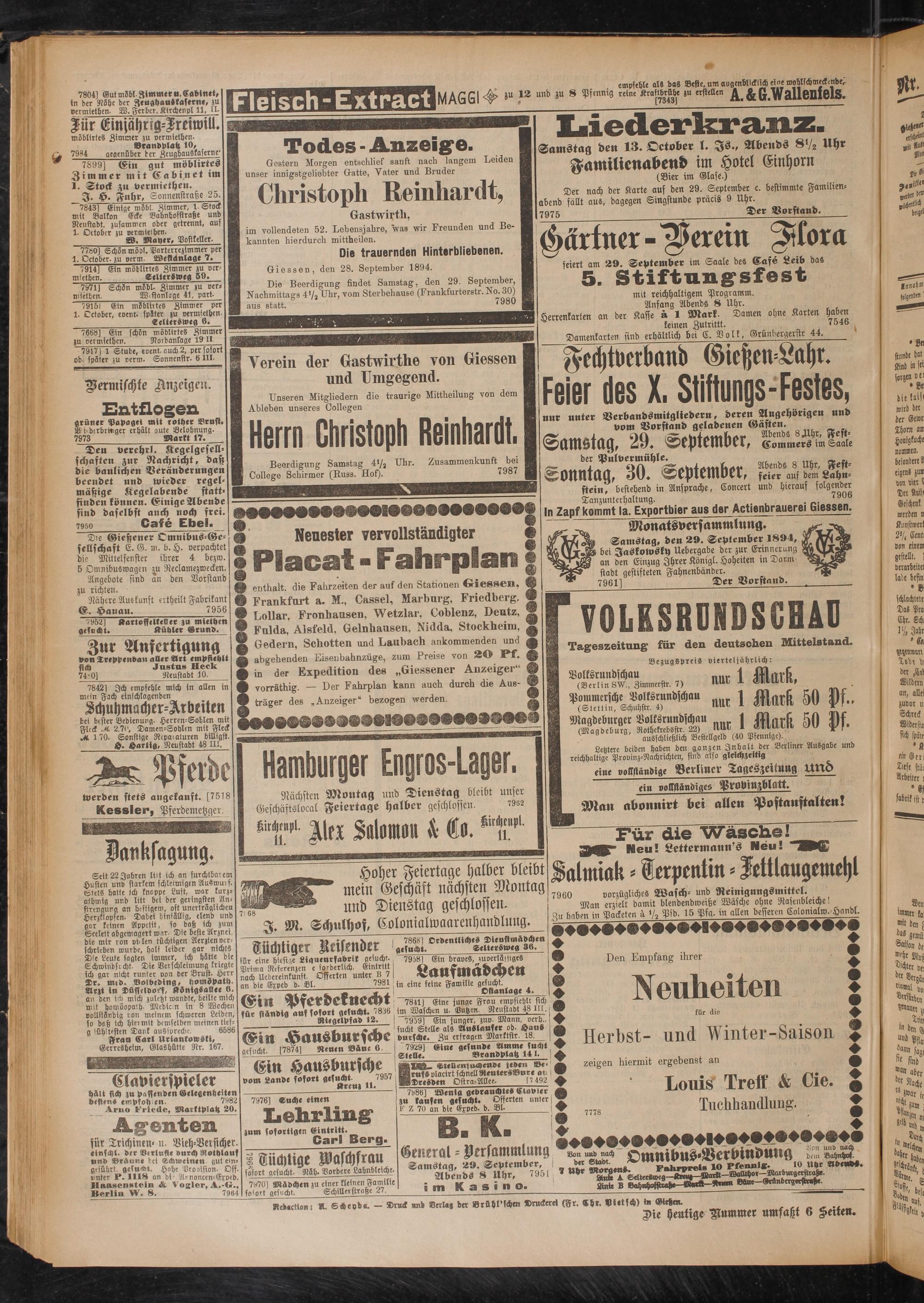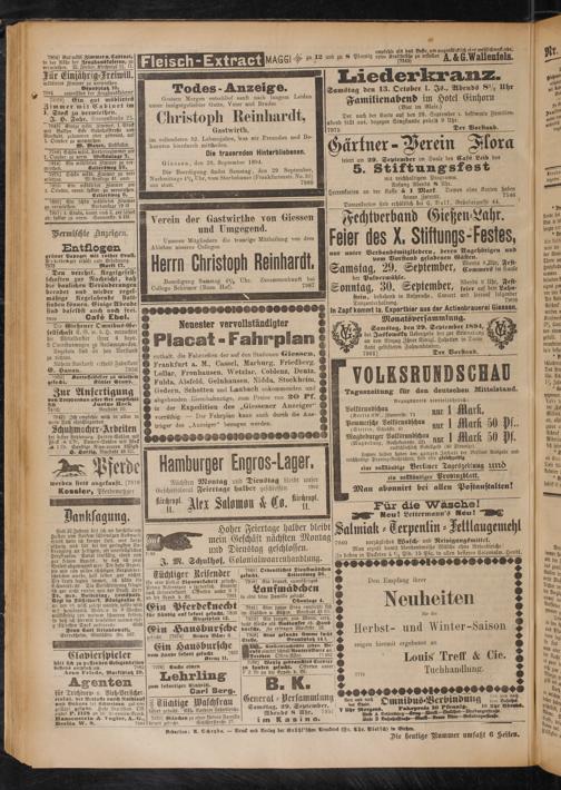 Die Beerdigung findet Samstag, den 29. September, Nachmittags 4'/z Uhr, vom Sterbehause (Frankfurterstr. No. 30) aus statt. 7980