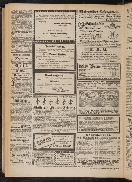 Zu haben in Giessen bei Gebr. Adami, Mäusburg 14. Eberh. Dort, Wallthorstr., Ad. Geisse, Seltersweg, Eberh. Metzger, Neustadt 8, C. Roth II., Wallthorstr. 5, Rud. Schlabachs Nacht., Ludwigsplatz 4, Wilh. Schomher, Neuen Baue 10, Fritz JEgly, Carl Bieler, August Noll II.[266