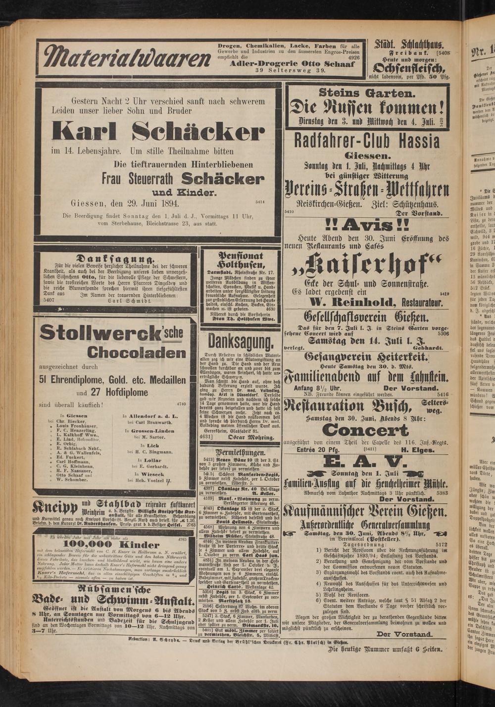 Giessen, den 29. Juni 1894.