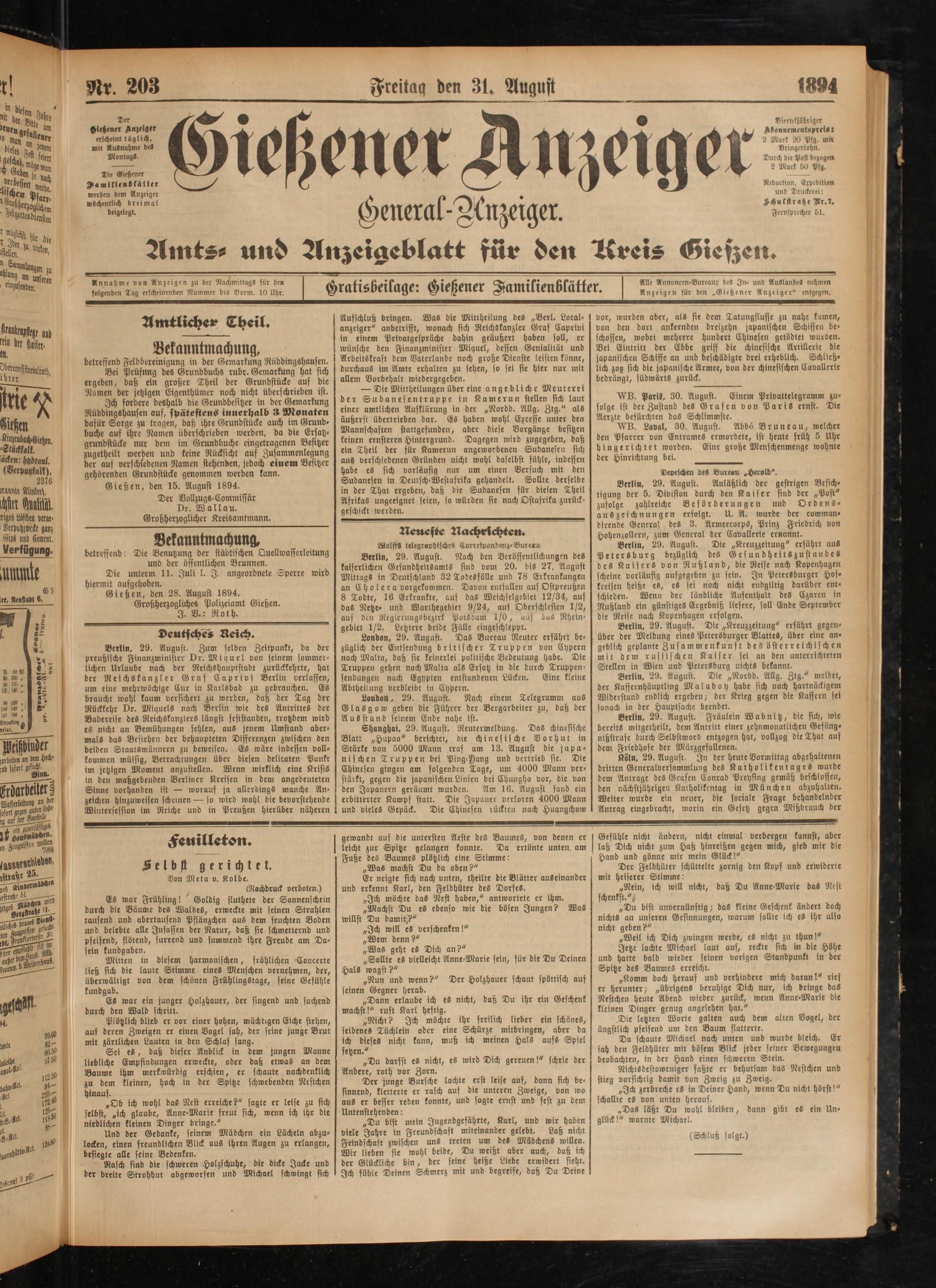 Amts- und Anzeigeblntt füv den Ttveis Gieszen.