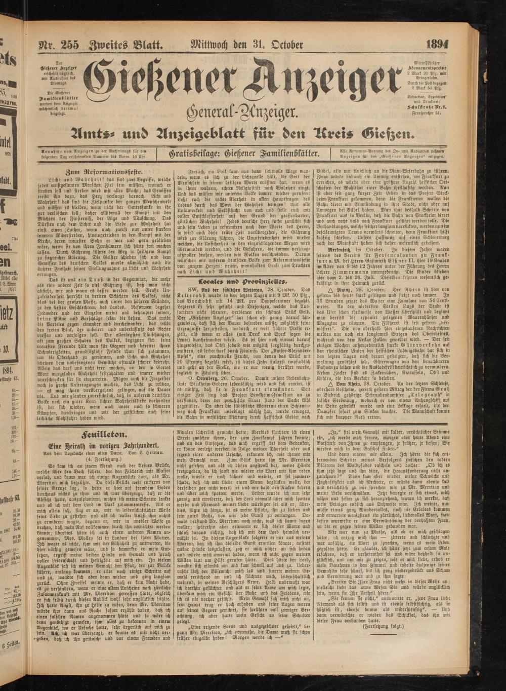 Nr. 255 Zweites Blatt. Mittwoch den 3L October