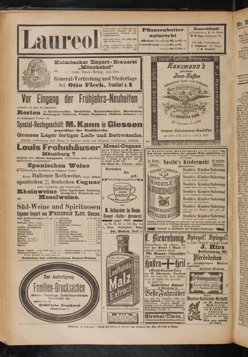 Nestle’s Kinder-Nahrung ist während der heissen Jahreszeit, ia der jede Milch leicht in Gährung übergeht, ein unentbehrliches Nahrungs- ____ mittel für kleine Kinder. 37